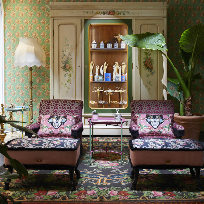 Gucci открыли временный магазин, который будет работать в Милане до июля, где представили обои, ткани и фарфор. Люди ходят туда толпами, смотрят на подушки и обои с тиграми — которые, наверное, все-таки свели бы с ума, если ими оклеить стены. Там же накрыты столы с пластиковыми фруктами и печеньями; все это смотрится очень китчево, но хорошо. Вообще что не может не броситься в глаза на всей ярмарке — это яркость. Заходишь в какое-нибудь прекрасное палаццо, увешанное цветами, а внутри оказываешься практически в будущем. Versace сделали разноцветный pop-up-магазин, где много мебели с фирменными символами марки, Marni сделали немного космическую мебель, а Missoni — выставку, посвященную вязанию. Там связаны абсолютно все предметы мебели — лампы, люстры. Поэтому и обои с тиграми Gucci смотрятся на ярмарке очень актуально и в порядке вещей.