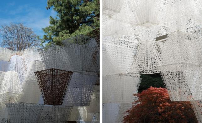 Ежегодно, конечно, участвуют и Cos. Они устраивают нереальные презентации во время Design Miami, а здесь вместе с французским архитектором Артуром Маму-Мани сделали гигантскую инсталляцию из разлагаемого пластика, распечатав все на 3D-принтере. Что еще отличает Cos — так это то, что здесь мало цвета: все белое или коричневое. Из этих пластиковых конструкций сделаны своего рода арки во дворе, где устроили лаундж-зону: все лежат отдыхают под приятную музыку.