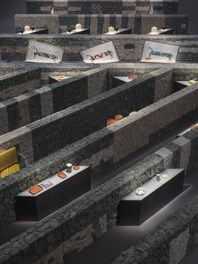 9 апреля Hermès устроили большую вечеринку: они выстроили в ангаре лабиринт, где в песке «зарыли» свою посуду, вазы и шкатулки. Поскольку Salone — самая большая ярмарка дизайна (и с каждым годом она становится все больше и больше), посетителей здесь надо удивлять скорее презентацией, чем самим продуктом. И Hermès это удалось. Несмотря на то что эти тарелки и вазы мы видели не впервые, какими бы прекрасными они ни были, на вечеринке марки вчера было не протолкнуться.