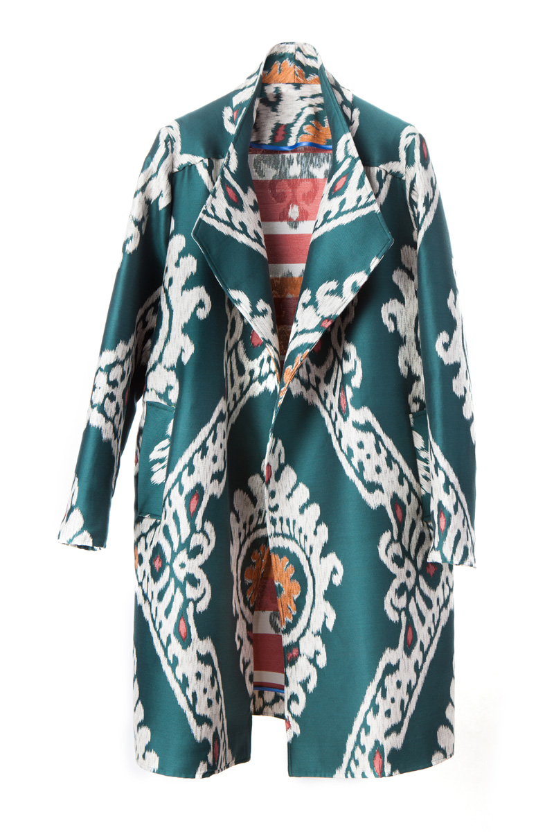 Еще один сценарий развития семейного бизнеса в Италии: Carlotta Canepa — дочерний бренд крупного производителя тканей. Весна-2017 — это его первая коллекция. В спокойных взрослых силуэтах максимально показана красота дорогих тканей: классический прямой крой подчеркивают выразительные, но неброские принты и сложные фактуры жаккарда. «Мы особенно известны благодаря шелку и паттернам, — говорит Жеральдин Алазио из шоу-рума марки. — Это первая коллекция, созданная дочерью владельца мануфактуры. До этого она много лет работала на фабрике, знает все про эти ткани — и сейчас поняла, что может показать возможности мануфактуры также и через коллекцию одежды».