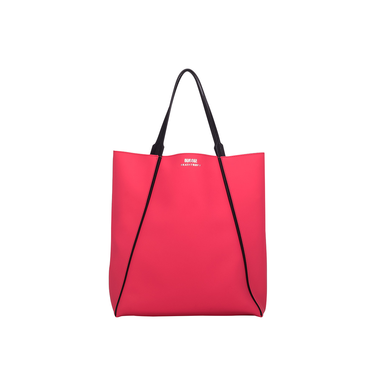 Bubble — это сумки и клатчи из прочной прорезиненной ткани всевозможных цветов, которые производятся в Италии на фабрике, где в 1990-е выпускалась продукция Mandarina Duck. Линия являет собой образцовый современный монобренд: максимальный выбор цветов при минимуме практичных, минималистичных и современных моделей (клатч, бакет, хобо, шопер). «Вы можете даже стирать их в машинке! — хвалятся на стенде. — Они ужасно прочные — вот моя сумка, посмотрите, сколько я в нее нагрузила!»