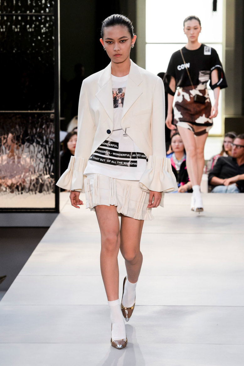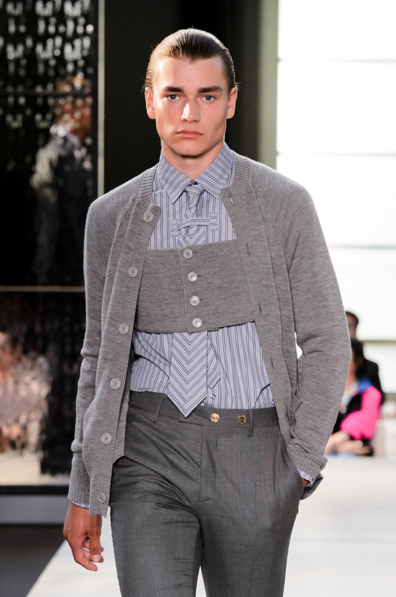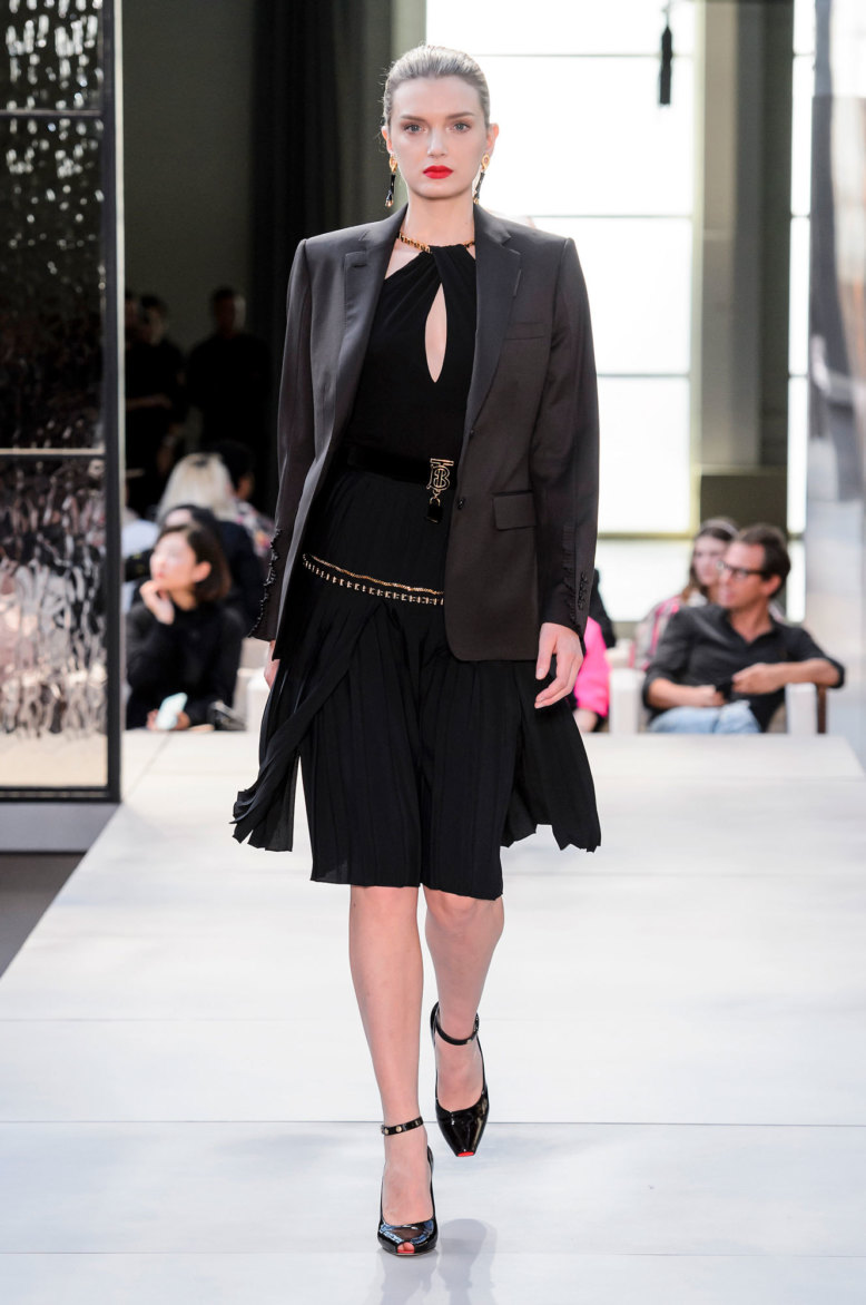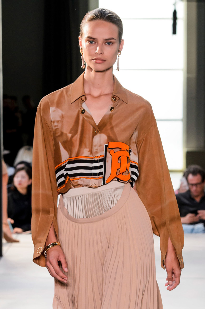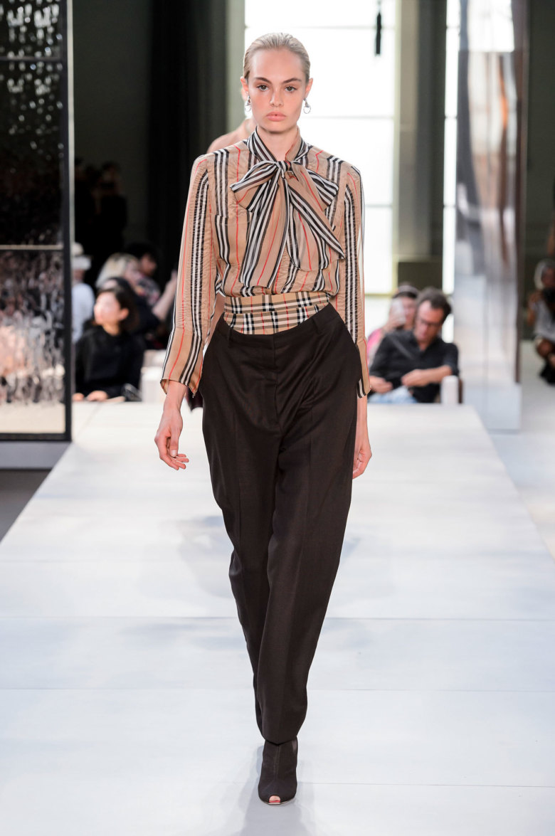 «Так долго готовились, подогревали аудиторию, обклеивали мишек и небоскребы новым лого. А получили добротную такую, миланскую коллекцию. И сколько бы нам ни рассказывали историй про то, как глубоко Тиши копал архивы и как поменял лошадку на единорога, потому что именно он был изначально символом марки, и о том, как сыграл на иронии и самоиронии британцев (все это очень подробно разобрано журналом Garage), все равно непонятно, зачем эти продернутые во все дырки платки, комбинашки с рукавчиками и викторианские фотографии на животах. Тиши дизайнер жесткий, бескомпромиссный и при этом на удивление коммерческий. И вот это парадоксальное сочетание его качеств как раз и не было проэксплуатировано. Да, конечно, все понятно, что эти отличные поло будут покупать пресловутые миллениалы, что юбки с откляченным брюшком станут хитом всех съемок. Но общее впечатление от коллекции все равно немножко Max Mara».