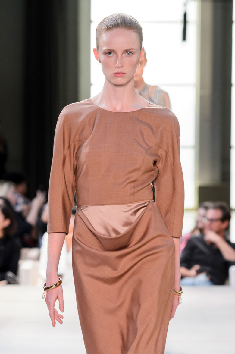Никаких крайностей: мини в коллекции нет вообще, макси — только для вечерних нарядов. В основном платья и юбки длиной строго до колена и ни сантиметром выше (впрочем, как и ниже).