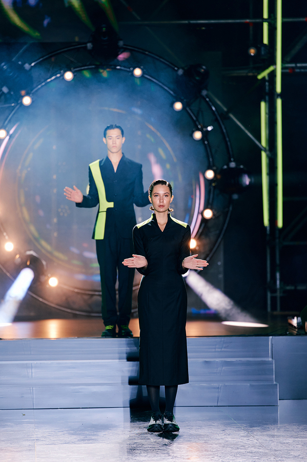 Справедливости ради, российские компании пока еще используют подиум по его самому прямому назначению — демонстрируют одежду. Формат модного шоу в 2025-м вдруг освоили не только «Авито» и «Самокат», но и «Яндекс Маркет», Wildberries и даже S7 Airlines. Поводы — самые разные. Например, показ «Самоката» стал финалом коллаборации сервиса доставки и Школы дизайна НИУ ВШЭ «Город начинается с меня», — в апреле в пространстве Tau показали коллекции студентов, посвященные «социальным трансформациям человека в городском пространстве». И, надо сказать, большие помещения идут показам Вышки на пользу — что в Tau, что в Зеленом ангаре (на «Винзаводе», где позже прошло выпускное шоу) и подиумы были посвободнее, и гостям дышать было легче, чем, например, на шоу в клубе «Баунс» в 2024-м. «Мы делаем показы, основанные на работах молодых и талантливых дизайнеров — наших студентов, — уже больше десяти лет. С каждым годом этот формат только набирает размах. Поэтому его выбор для сотрудничества с “Самокатом” был естественным», — объясняет Анзор Канкулов, руководитель направления «Мода» Школы дизайна НИУ ВШЭ.