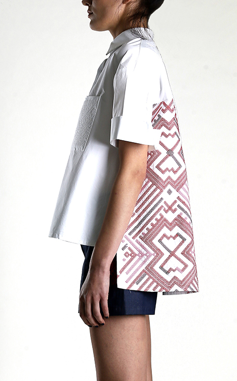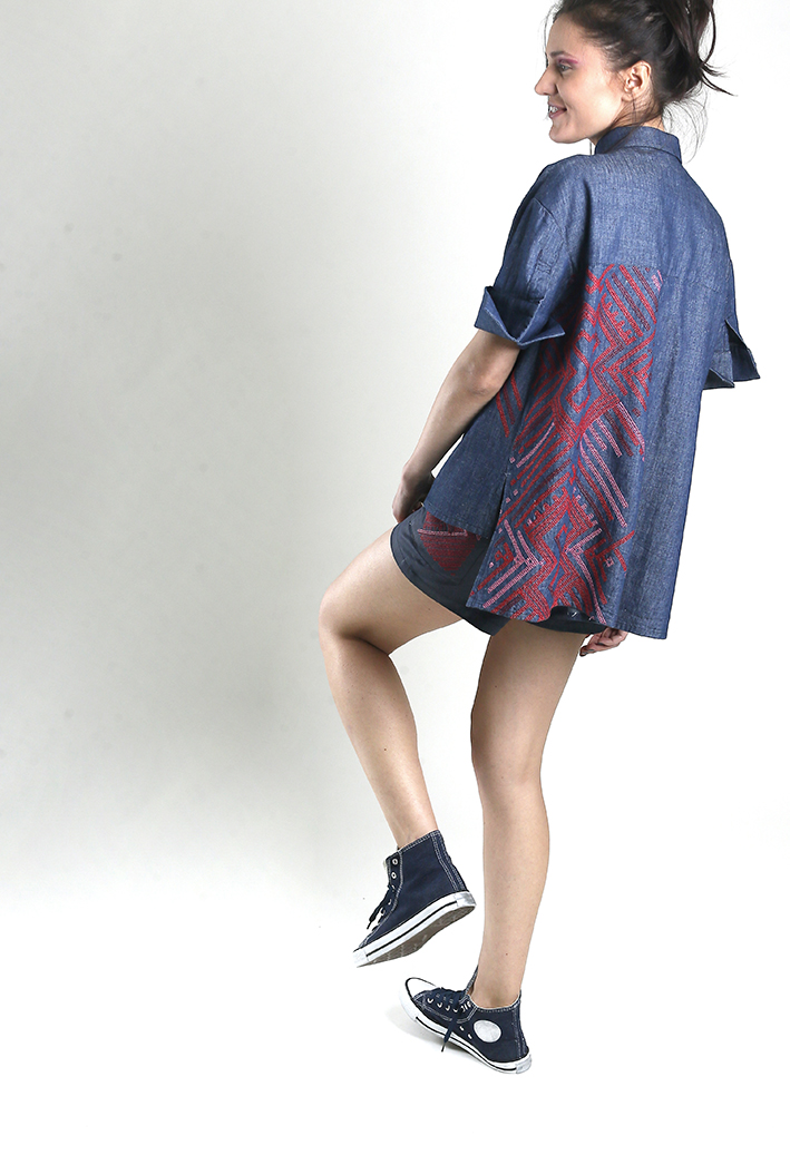 Если ручную вышивку и кружева из коллекций Ульяны Сергеенко легко представить в этнографическом или текстильном музее, то иорданцы Jo!, которые тоже обращаются к народным ремеслам, — это одежда, чтобы носить каждый день, и слово casual нужно выделить жирным шрифтом. «Я переживаю, что наша вышивка может исчезнуть. Она сохранилась только в деревнях. Но я хочу носить джинсы, а не абайю», — говорит одна из основательниц бренда Зейн Манго, до этого владевшая ателье по пошиву вечерних платьев в Аммане . Одна из, потому что Jo! — дело рук коллектива из пяти дизайнеров Creative Jordan. В первой и единственной пока коллекции — рубашки, шорты, туники свободного кроя из хлопка и денима, украшенные абстрактной вышивкой по мотивам традиционной. Ткани и производство — все иорданское. Белый геометричный узор «алмазным» стежком на нагрудном кармане белой же рубашки, красно-розовый manajel вдоль бокового шва на голубых шортах — нет, это не ручная работа. «Очень дорого, может, сделаем пару образцов для выставки, но мы хотим, чтобы нашу одежду носили». И магия Jo! в том, что нравятся эти вещи вне зависимости от того, можете ли вы быстро найти Иорданию на карте.