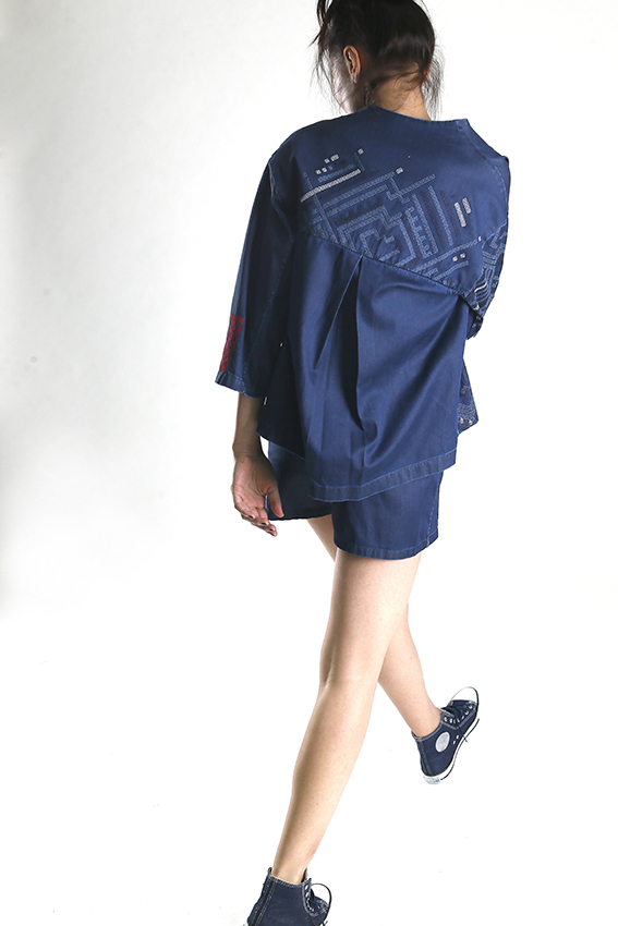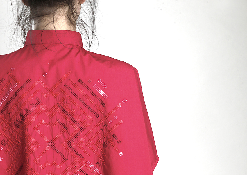 Если ручную вышивку и кружева из коллекций Ульяны Сергеенко легко представить в этнографическом или текстильном музее, то иорданцы Jo!, которые тоже обращаются к народным ремеслам, — это одежда, чтобы носить каждый день и слово casual нужно выделить жирным шрифтом. «Я переживаю, что наша вышивка может исчезнуть. Она сохранилась только в деревнях. Но я хочу носить джинсы, а не абайю», — говорит одна из основательниц бренда Зейн Манго, до этого владевшая ателье по пошиву вечерних платьев в Аммаме. Одна из, потому что Jo! — дело рук коллектива из пяти дизайнеров Creative Jordan. В первой и единственной пока коллекции — рубашки, шорты, туники свободного кроя из хлопка и денима, украшенные абстрактной вышивкой по мотивам традиционной. Ткани и производство — все иорданское. Белый геометричный узор «алмазным» стежком на нагрудном кармане белой же рубашки, красно-розовый manajel вдоль бокового шва на голубых шортах — нет, это не ручная работа. «Очень дорого, может, сделаем пару образцов для выставки, но мы хотим, чтобы нашу одежду носили». И магия Jo! в том, что нравятся эти вещи вне зависимости от того, можете ли вы быстро найти Иорданию на карте.