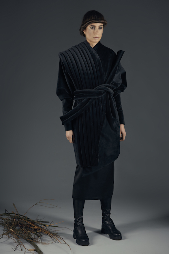 В этот раз на Pitti Super несколько стендов с украинскими брендами в рамках специальной программы More Dash: Eyes on the East. Среди этого праздника рюшей, бархата и насыщенных цветов выделялся стенд дизайнера грузинского происхождения Тамрико Кебурии с монохромными сложными вещами. «Это третья коллекция Tamar. Они все объединены темой природы. В этот раз это Naked Nature, природа в городе: осенние сумерки на киевской веранде и бокал красного вина». Длинные платья из шерсти и вискозы и архитектурные пальто из бархата, декорированные полипропиленовыми жгутами, — эти вещи не утратят своей актуальности и через несколько сезонов, ведь хайп и кроксы на меху существуют будто в параллельной Tamar вселенной. То же можно сказать и о любимом дизайнере Тамрико — Ирис ван Херпен. С поправкой на то, что Херпен — это уже скорее искусство, чем дизайн. К слову, за внешний вид вещей тоже можно быть спокойным — они даже подшиваются вручную. «Это почти не влияет на себестоимость, и мне хочется, чтобы вещи давали ощущение качества. Ведь сейчас производится столько низкопробной, плохо сшитой одежды». Забавный факт: Тамрико очень нравятся грибы, их космические формы и разнообразие. Она даже хотела сделать их частью концепции Tamar. Но остановилась только на одной коллекции, им посвященной.