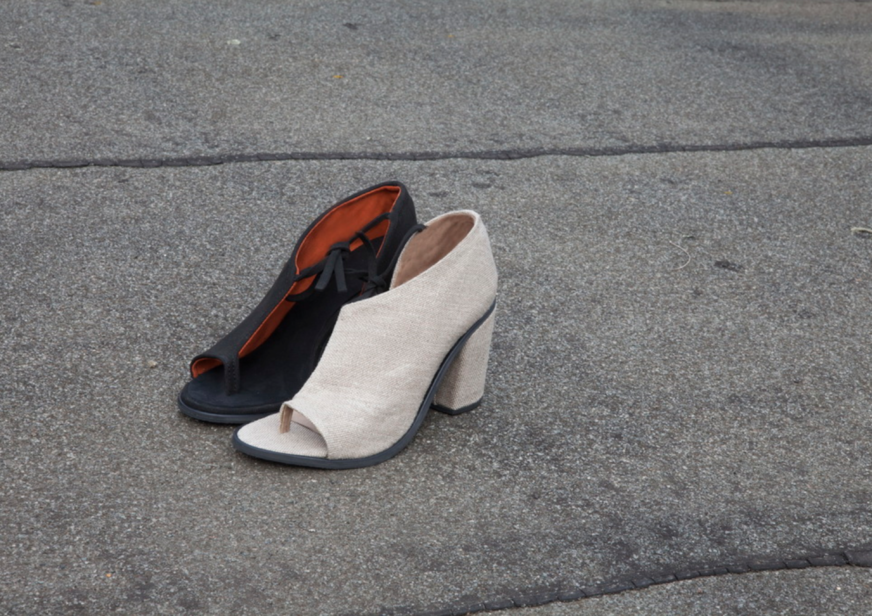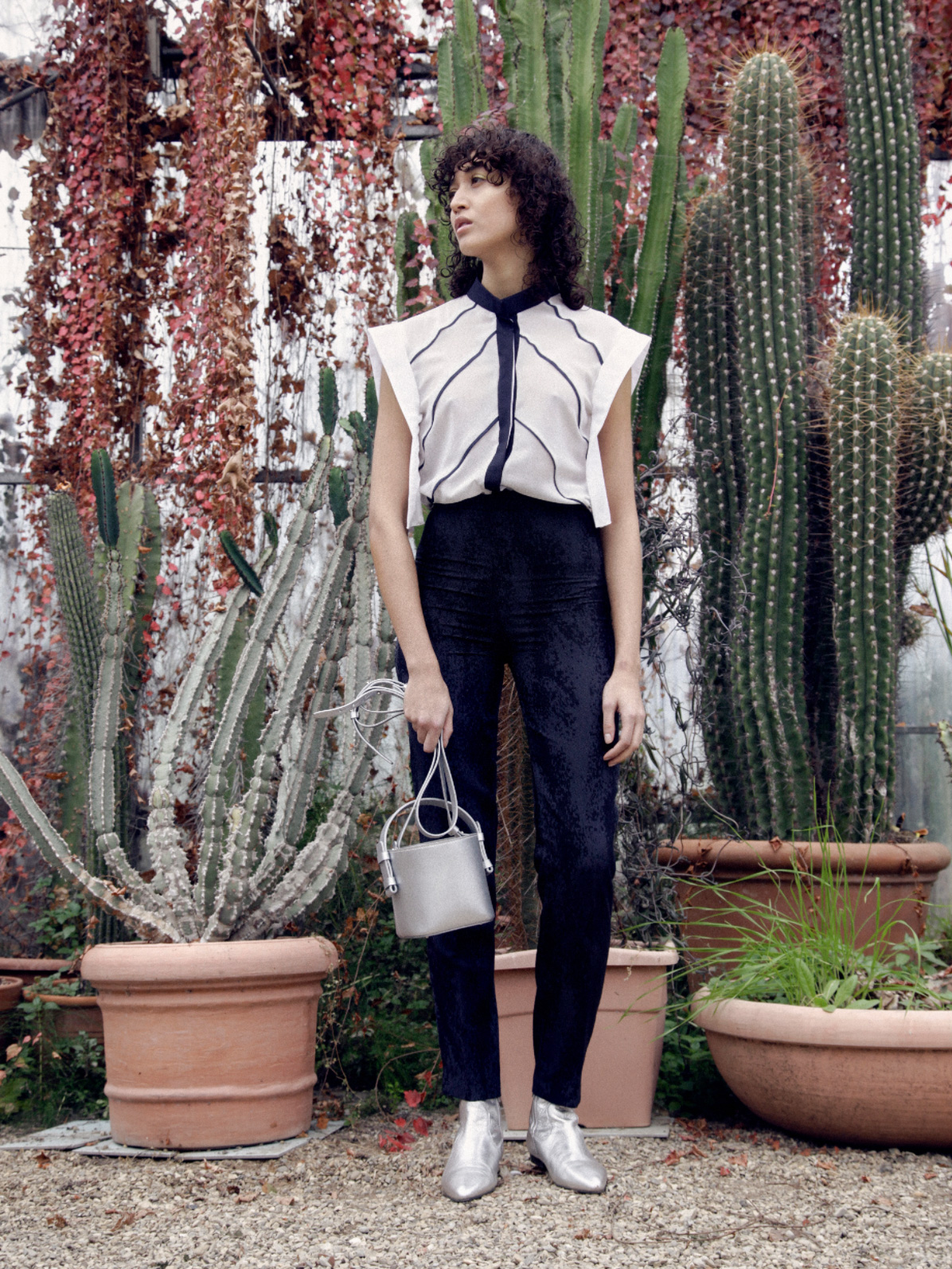 Только представьте: в Дейнзе, глубокой фламандской глуши, девушка собственноручно делает ботильоны и балетки из тех же материалов, что обувь пожарных. Для себя и других девушек с высокими этическими запросами, которым современная реальность пока не отвечает. Sisterhood в этом случае — очень правильное слово. Выпускница Королевской академии изящных искусств в Генте Самира Эхсани долго работала в команде британца Ричарда Николла, но пару лет назад набралась решимости запустить именной бренд. Самира девять лет вегетарианка и уже год как перешла на веганство: «Было сложно. Но труднее всего оказалось найти красивую базовую обувь из веганской кожи. Пришлось сделать ее самой». Дизайн и цветовая гамма по-северному сдержанные, если не сказать скупые, вместо декора — контрастные открытые швы и цилиндрический каблук (такой любят Dries Van Noten и Jacquemus). Самира говорит, что при работе с экокожей нужно быть в разы внимательнее — нельзя рассчитывать на то, что она растянется, как натуральная. Отсюда ее бесконечные поиски идеальной микрофибры, дышащей, легкой и непромокаемой. Перед тем как брать ее в работу, она отправляет все образцы в лабораторию: «Осознанность требует бóльших временных затрат».