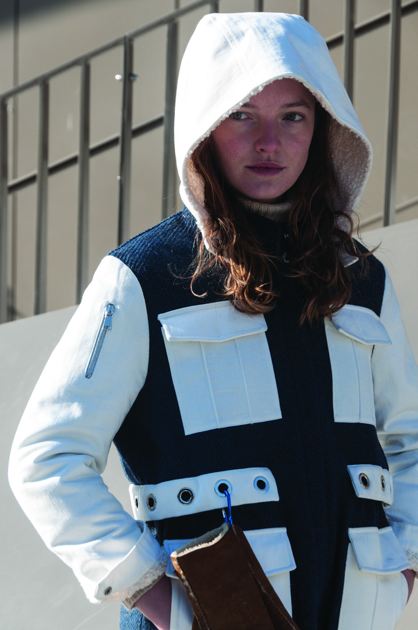 Этичный подход к производству, любовь к комфорту и хрестоматийное итальянское качество — эти теги можно поставить вместо описания к молодому миланскому бренду верхней одежды Tasch. Занимается им выпускница Istituto Marangoni Витториа Гатти. В прошлом она работала стилистом и сотрудничала с Tommy Hilfiger и John Varvatos, но решила сама заняться дизайном. Новая коллекция — история про альпинизм в Патагонии 70-х. Витториа формулирует идею с точностью, сравнимой лишь с дотошностью, с которой она относится к своей работе. Только экоматериалы, только деним и теплый синтетический наполнитель. При этом в ее куртках (из денима!) вполне комфортно до -10 по Цельсию. Правда, деним в версии Tasch иногда не узнать с первого раза — некоторые модели покрыты металлизированным напылением, напоминающем искрящийся на солнце снег. При выборе цветов Витториа вспоминала свой поход в Альпы — синий, белый и серебряный. Особая гордость — пояс с перфорацией по периметру каждой куртки. Тонкими тросами к кольцам прикрепляются небольшие клатчи, они же карманы. И фокус в том, что вес того, что в них лежит, совсем не ощущается. Вот такие законы физики и игры в функциональность.