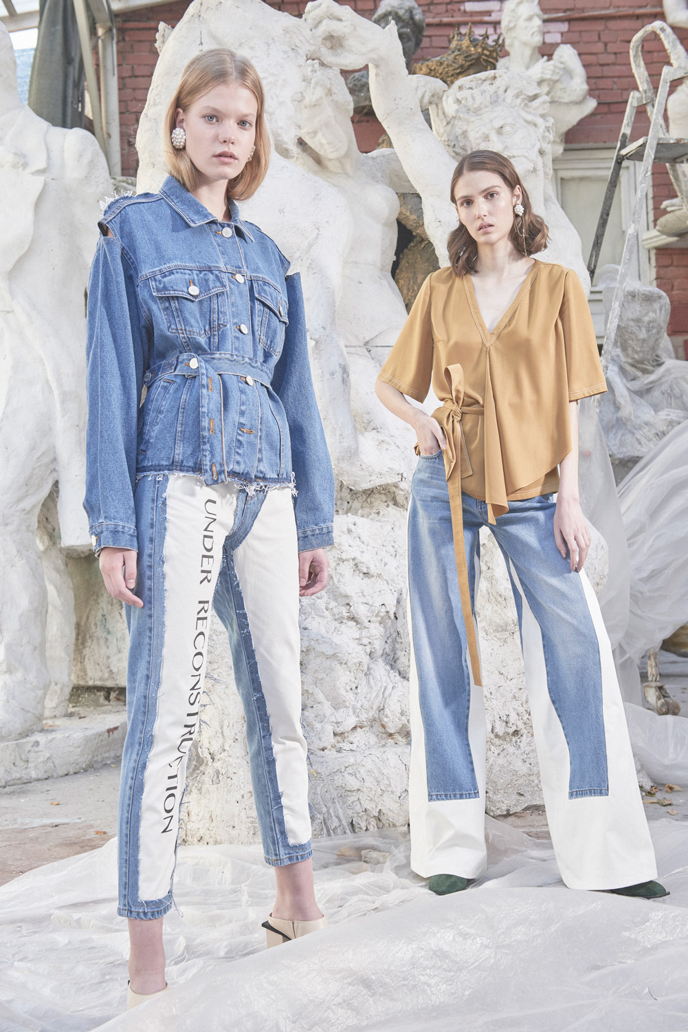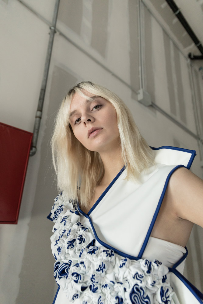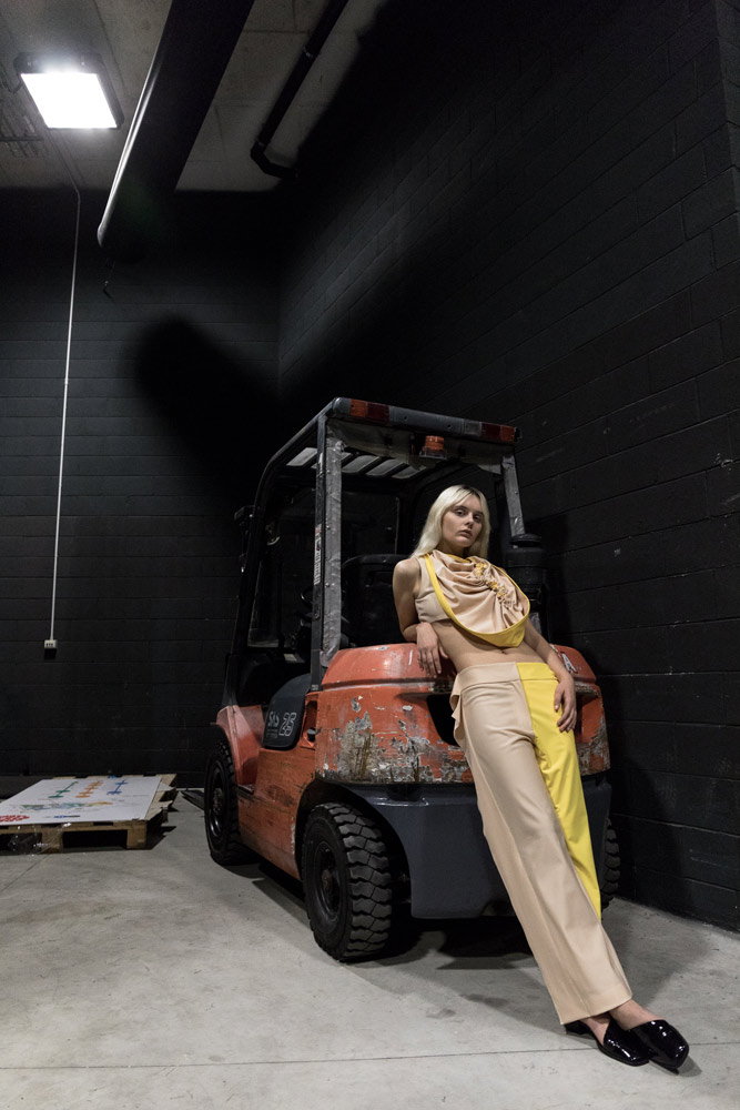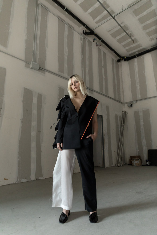 Детище двух украинских дизайнеров — Димы Чаюна и Антона Якшина. В летней коллекции преобладают простые формы, а крой и исполнение на редкость хороши (Антон признается, что ему помогает конструировать инженерное образование). Хочется отметить платье из ткани в костюмную полоску с пуговицами вдоль разреза, джинсы, где голубой деним будто вырезан и помещен на фон из белого денима, белый трикотаж, где в скромном ряду красных нитей угадывается отсылка к украинской вышивке, и тренч, собранный из двух видов бежевого. Несомненно the one to watch.