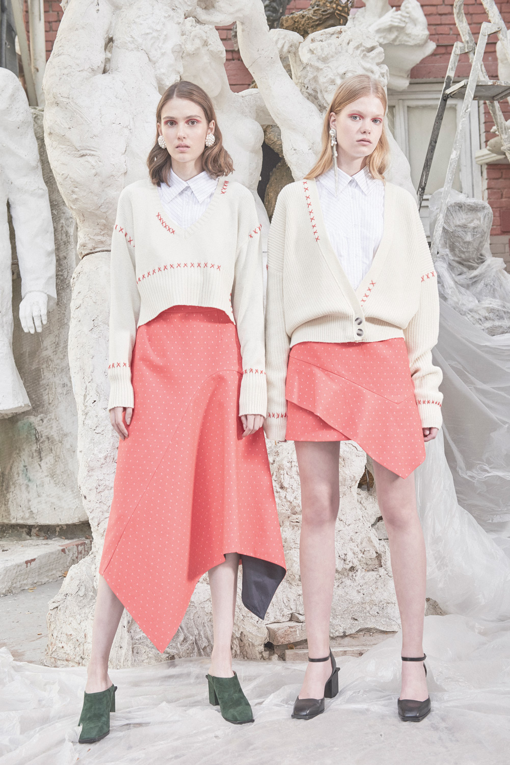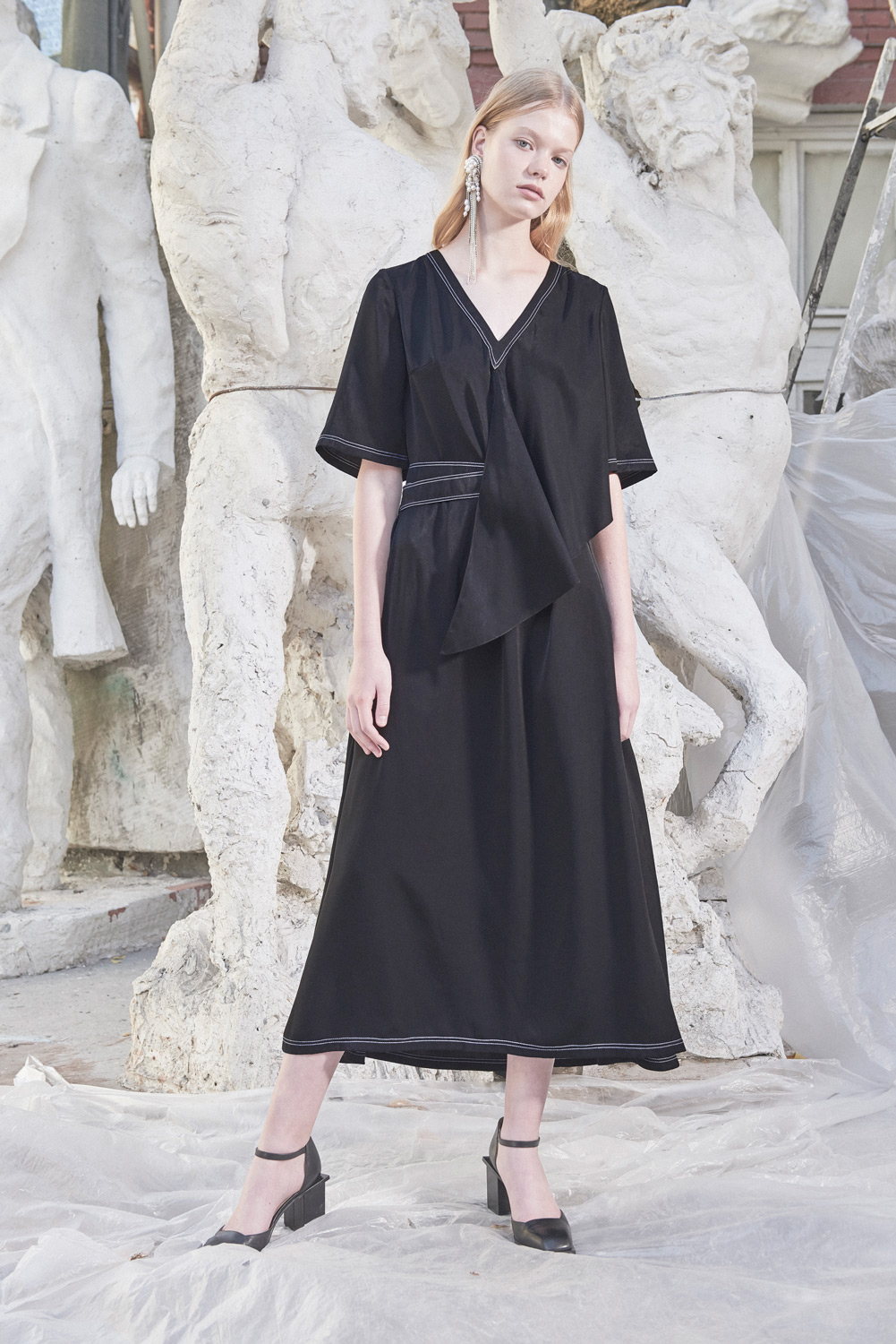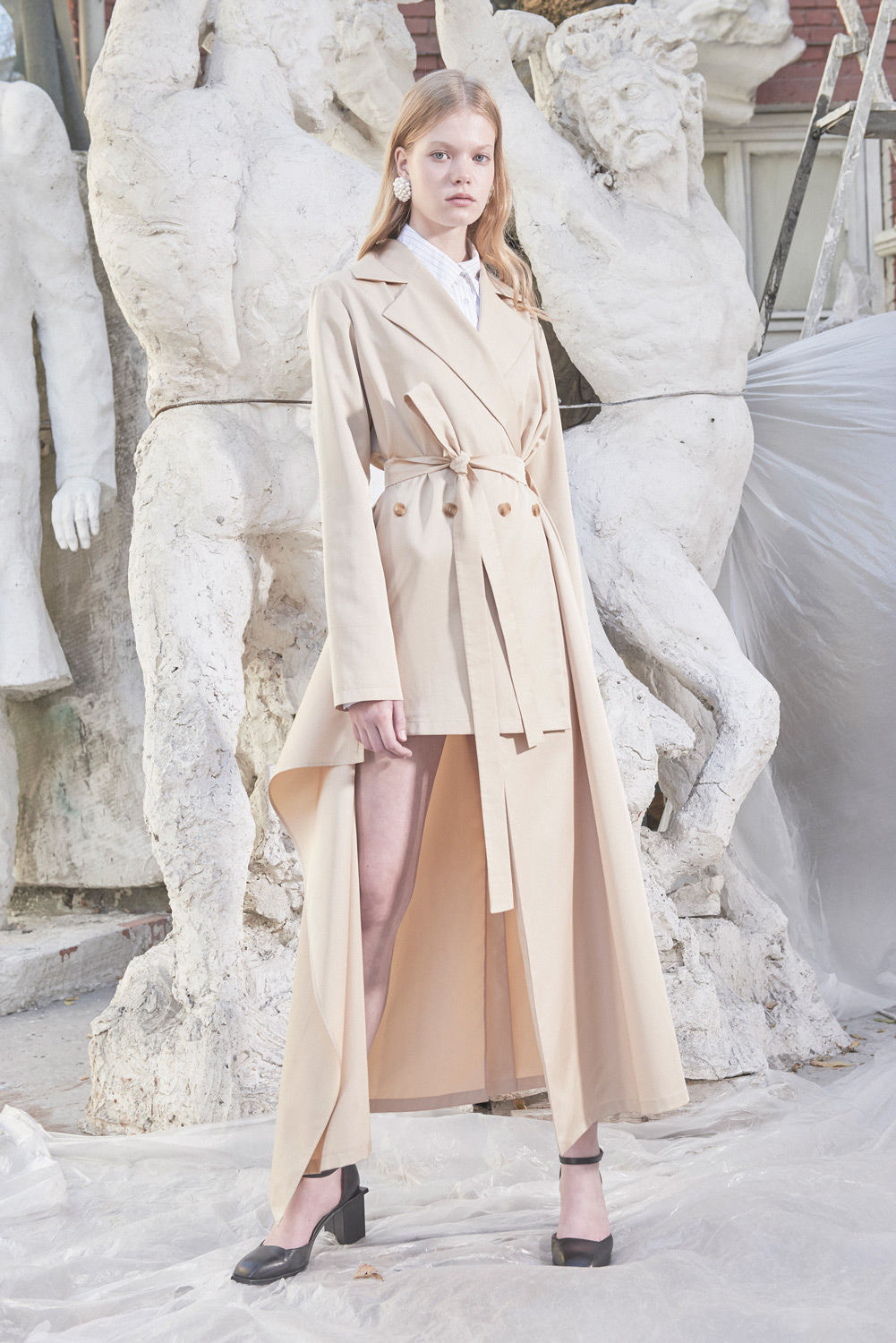 Детище двух украинских дизайнеров — Димы Чаюна и Антона Якшина. В летней коллекции преобладают простые формы, а крой и исполнение на редкость хороши (Антон признается, что ему помогает конструировать инженерное образование). Хочется отметить платье из ткани в костюмную полоску с пуговицами вдоль разреза, джинсы, где голубой деним будто вырезан и помещен на фон из белого денима, белый трикотаж, где в скромном ряду красных нитей угадывается отсылка к украинской вышивке, и тренч, собранный из двух видов бежевого. Несомненно the one to watch.
