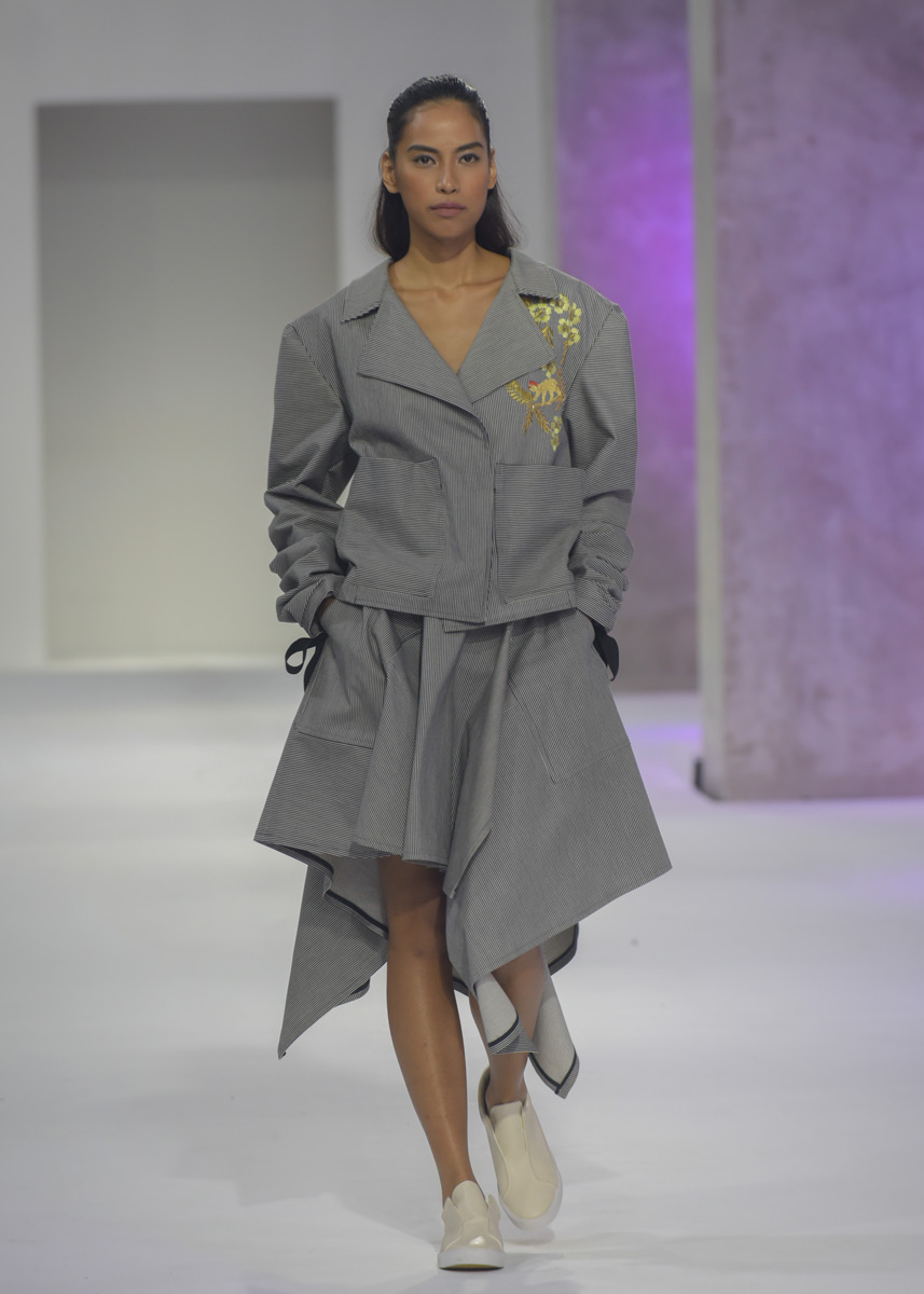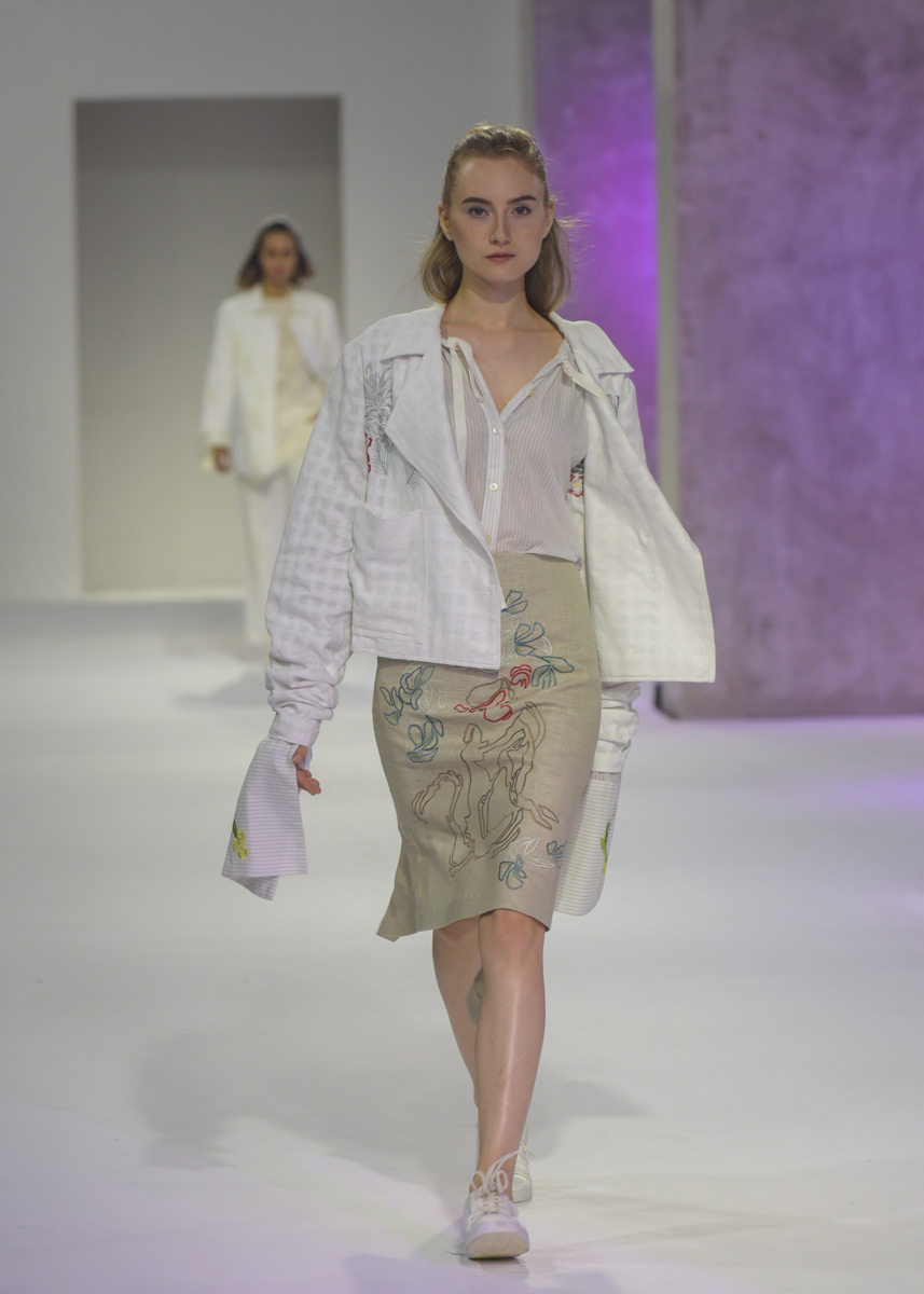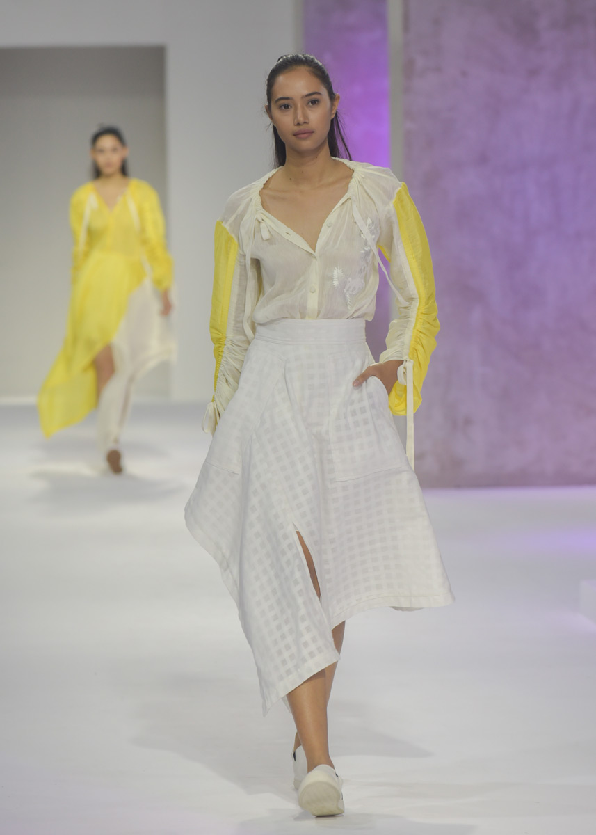 Марка из подборки Vogue Talents, самой любопытной части выставки, которую курирует Vogue Italia. Дизайнер Кристиан Эдвард Далогаог берет классические фасоны, иногда деликатно деконструированные, натуральные ткани неброских цветов (в основном лен) — и украшает их чудесными цветистыми ручными вышивками в народном стиле — если набрать в поиске Philippine embroidery, можно оценить богатство наследия, с которым марка имеет дело. При этом одежда с вышивками выглядит крайне современно и космополитично.