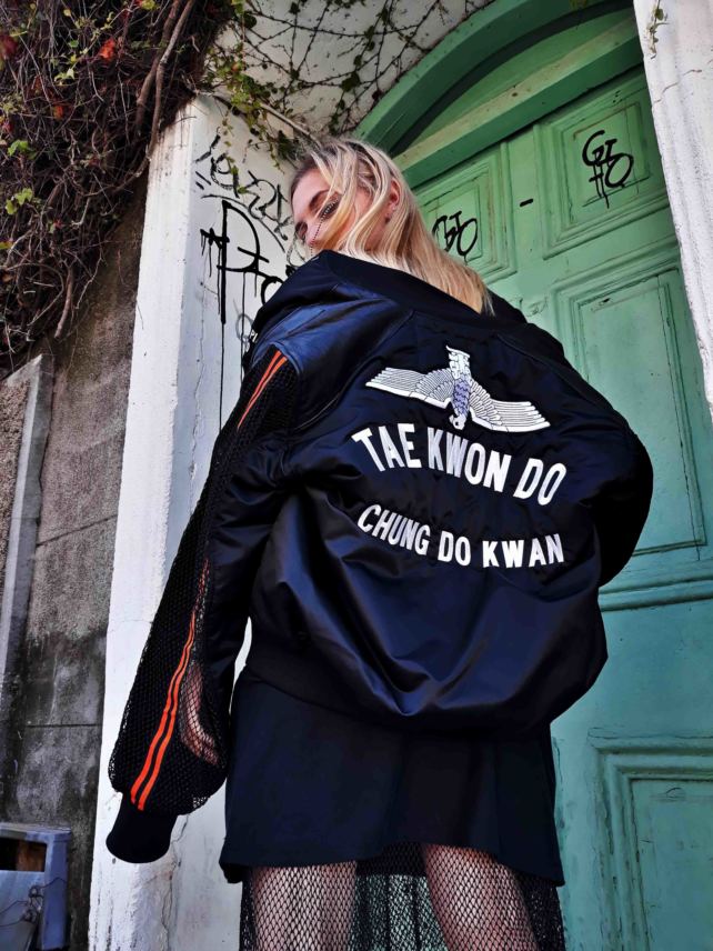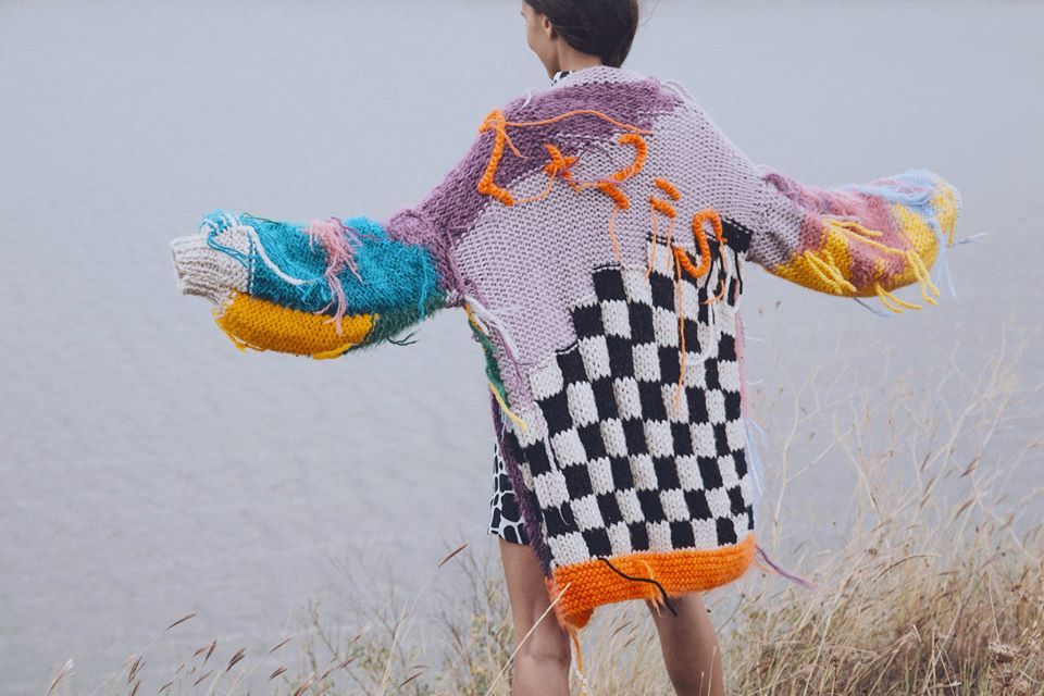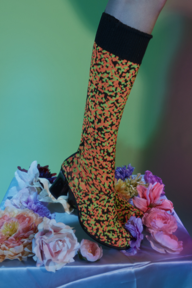 Ванеса, дизайнер Vanesa Krongold, вполне в духе выставки мастеров Hermès прямо на стенде вручную обрабатывает край тканого голенища сапога. Двуцветный неон (паттерны для вязки напоминают пиксельный камуфляж), одежда и украшения, плетенные из крупных бусин, — яркий, немного кукольный мир Ванесы притягивает взгляд, и тут же хочется добавить к собственной белой футболке ее гигантские серьги.