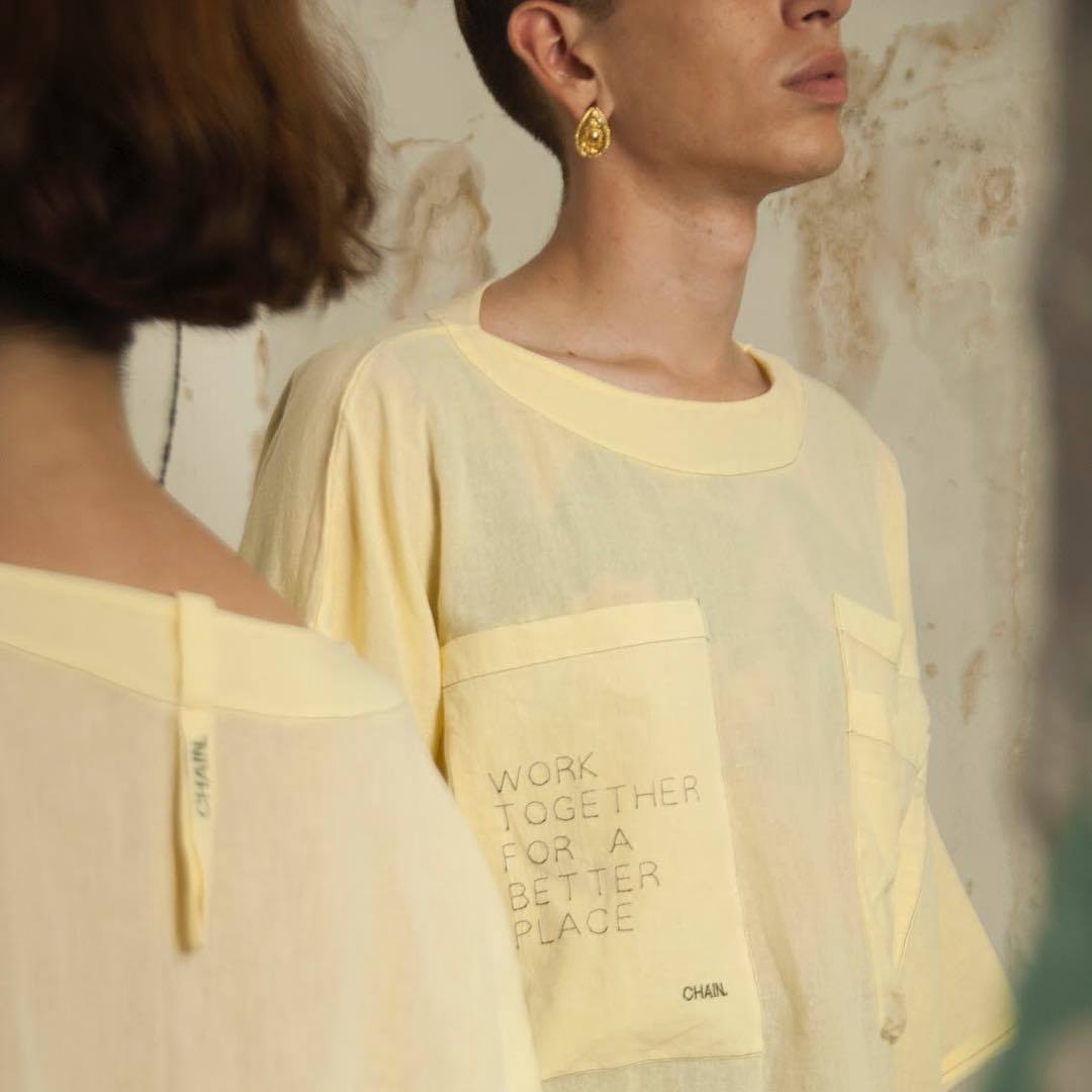 Невесомые вещи Chain, марки из Буэнос-Айреса, очень экологичны: по уверению дизайнера марки, эту одежду можно закопать, и она полностью разложится. Неизвестно, аргумент ли это для покупателя: тончайшие вещи из хлопковой вуали (где-то деконструирован рукав, а где-то брюки торчат из-под шорт, нежные пастельные цвета — результат окрашивания готовых изделий) закапывать не хочется, а хочется носить в самую жару. Ткани ткут на севере Аргентины, в заброшенных цехах одной из многих закрывшихся в стране фабрик.