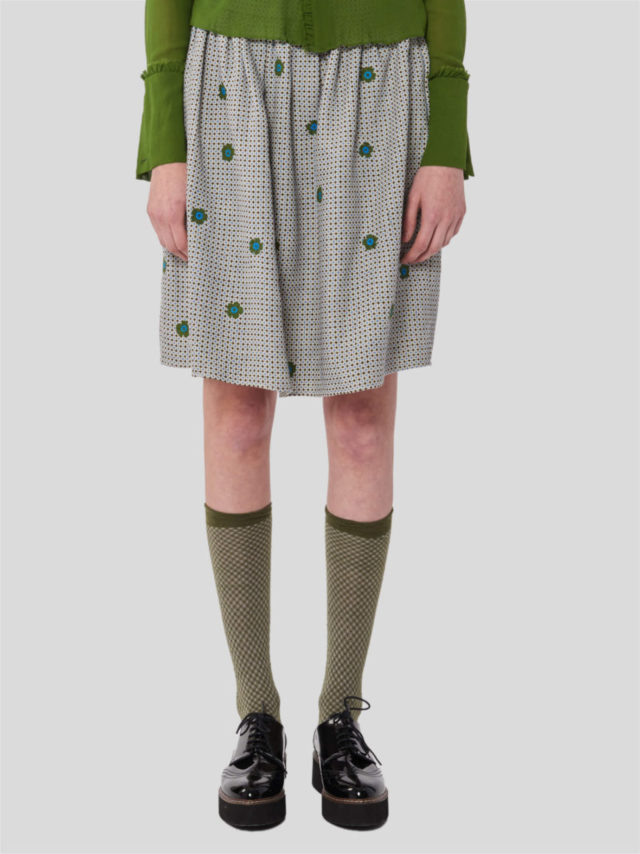 Эта прекрасная марка — настоящий старожил Pitti Uomo. Ее основательница Джеки Вильвуае запустила свой бренд восемь лет назад, в возрасте 54 лет, вырастив до того пятерых детей, — хороший пример для тех, кто боится что-то в жизни не успеть. Началось все с аксессуаров, бабочек и галстуков с ручной вышивкой, которые быстро заприметили Colette. Сейчас у бренда выходят мужская, женская, детская коллекции, коллаборация с Comme des Garçons, а продается она во всем мире — в том числе в московских ЦУМе и Air. Обаятельные платья с тонкими, ироничными и шаловливыми вышивками удаются Джеки не хуже, чем мужские рубашки и футболки. А вышивают все вручную индийские мастера в Уттар-Прадеше.