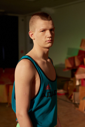 Мы всегда смотрим назад, но делаем про сегодня. Мои друзья, ты же знаешь, скейтеры. Вот у него нет денег, он пошел в секонд-хенд, что он купил? Винтажную рубашку Burberry из 1990-х. Она большая, размера XL. Этот Burberry — он про то, что я вижу вокруг себя». К ранней рейв-сцене Петербурга отсылали неоновые цвета спортивных костюмов и прически моделей, шагавших по широкому балкону ДК работников связи — именно там прошел в 1989 году первый в России рейв. «Ребята в основном все из Санкт-Петербурга, — рассказал Гоша. — Кто-то из балетного училища, кто-то из атлетической школы, кто-то скейтер, футболист».