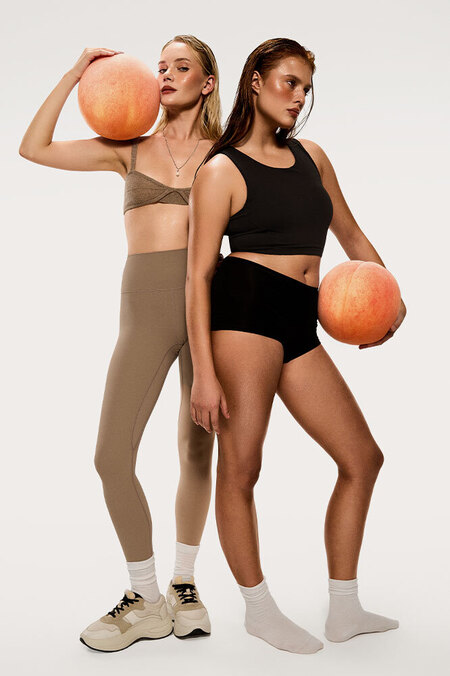 Но и наши герои встают на защиту легинсов. В числе хитов их называет марка Belle You, уже шесть лет работающая под креативным руководством соосновательницы 12 Storeez Марины Голомаздиной. При этом предлагать спортивную одежду — минималистичную, природных оттенков, в своем стиле, и неожиданно оптимистичных расцветок вроде салатовой — Belle You начал только в прошлом году. Говорят, клиентки стали все чаще запрашивать «функциональные и эстетичные образы для спорта и активного образа жизни в городе»; ну а кроме того, это был просто логичный шаг в развитии бельевого бренда. Продолжают пользоваться спросом и легинсы IRNBY — шестилетнего бренда Анастасии Мироновой, спортсменки, основательницы бьюти-марки Predubezhdai и просто красавицы. Раньше они с ходу узнавались в залах и инстаграмах благодаря брендированным резинкам и компрессионным линиям в виде трусов на ягодицах. Теперь, говорят в IRNBY, эстетика бренда взрослеет вместе с аудиторией, и ярко выраженного секса в его одежде стало заметно меньше.