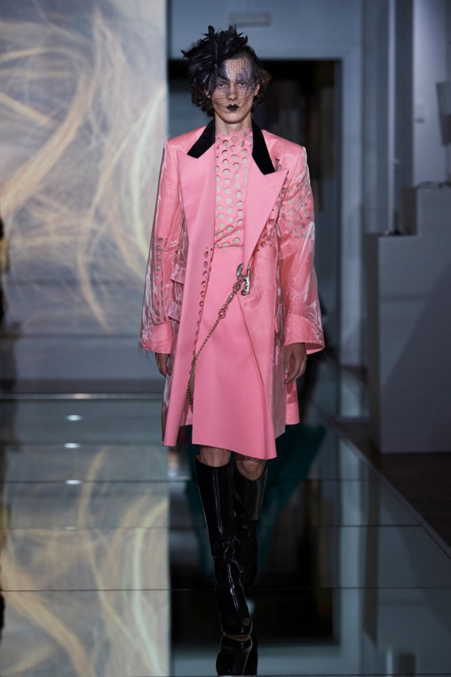 Грим моделей дублировал детали одежды не только на показе Schiaparelli. Креативный директор Maison Margiela использовал тот же прием. Так на лицах моделей появились круги, повторяющие перфорированные детали одежды, и рисунки по мотивам платьев-бабочек из вечерней части показа. Джон Гальяно интерпретировал образы насекомых и в одежде — с помощью небрежно завязанных бантов и объемных крыльев. Этот показ можно не только разглядывать в деталях, но и послушать: дизайнер собрал специальный плей-лист для Apple Podcasts и Spotify.