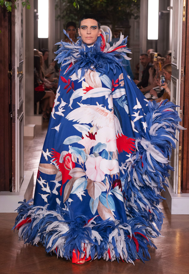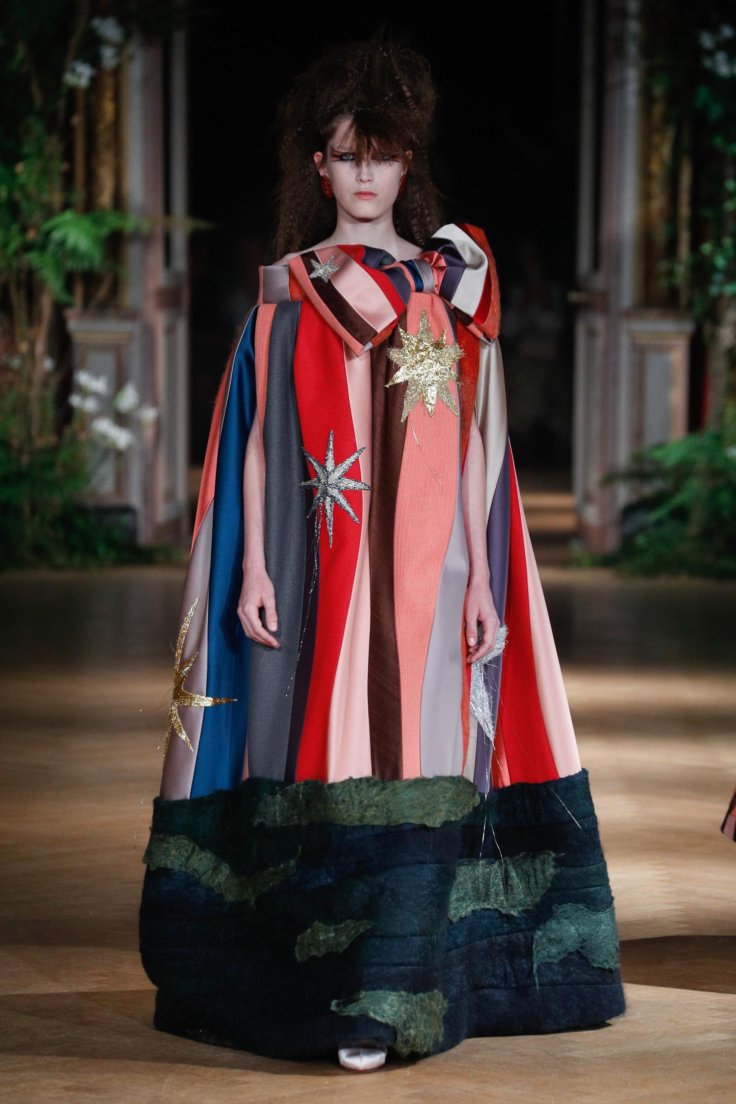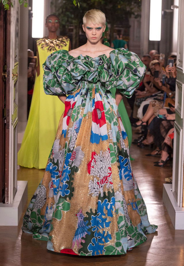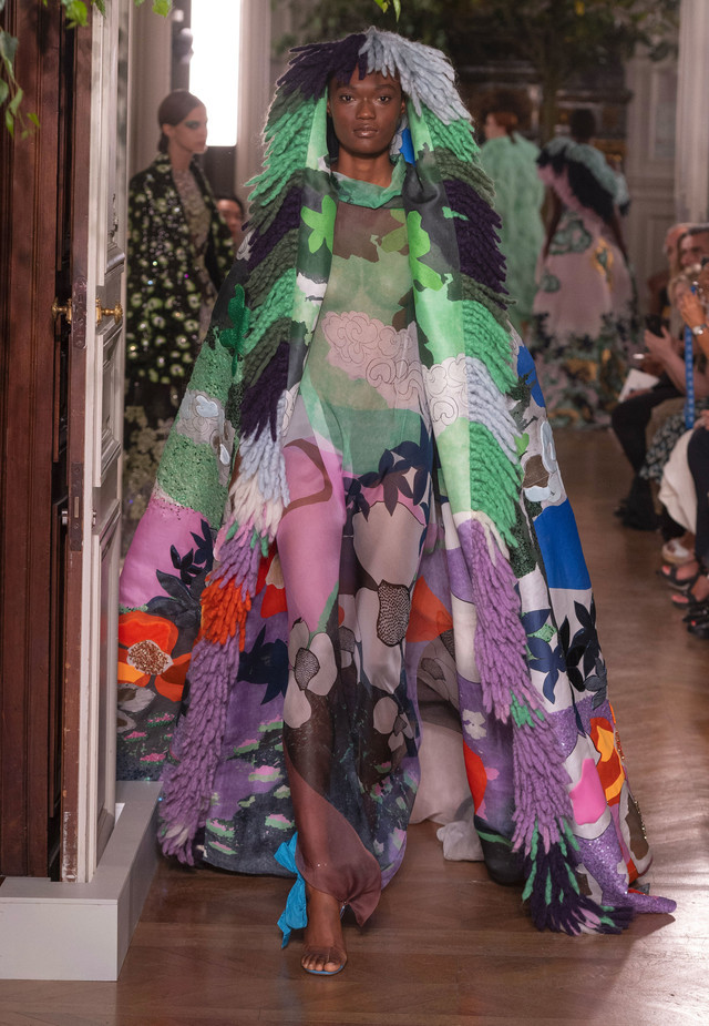 На кутюрном показе Valentino креативный директор бренда Пьерпаоло Пиччоли решил протянуть нить от прошлого к будущему модного дома. Так, накануне показа Valentino запустили в инстаграме маски по мотивам макияжа Haute Couture; первыми их примерили сотрудники марки в ее официальном инстаграме. На шоу же платья ярких цветов — зеленого, желтого, оранжевого, фуксии, голубого — дополняли головные уборы по мотивам исторических костюмов среднеазиатских народов. В середине показа на подиуме появилась 75-летняя актриса и супермодель Лорен Хаттон. А в финале Пьерпаоло Пиччоли вышел на поклон с командой мастеров модного дома, которые затем обнялись с основателем марки Валентино Гаравани, сидевшим в первом ряду.