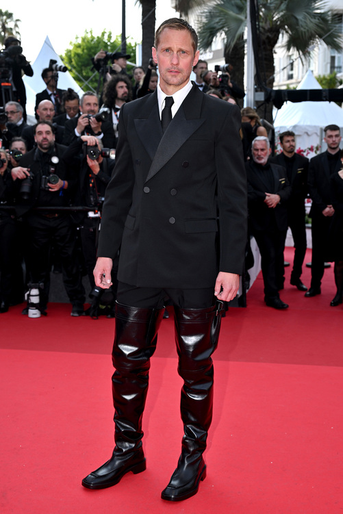 И не говорите, что нынешняя эра Александра Скарсгарда — не ваша Римская империя. Осмыслить его алые в крапинку ногти на дорожке Governors Awards (ох, сколько еще эффектных выходов подарил он нам во время промотура фильма «Седло») слезно просим бьюти-отдел, а здесь оставим, пожалуй, самое безумное комбо года: смокинг, рыболовные сапоги Saint Laurent и красная дорожка Каннского фестиваля.