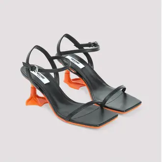 Искусственные белые перья, десятисантиметровый оранжевый резиновый каблук, повторяющий утиные лапы с перепонками, подошва, напоминающая плоский утиный клюв, — ни одна утка при создании этой пары Moschino не пострадала. Категория выдуманная, факт — налицо: самая мемная пара 2025 вышла у Адриана Аппиолазы.