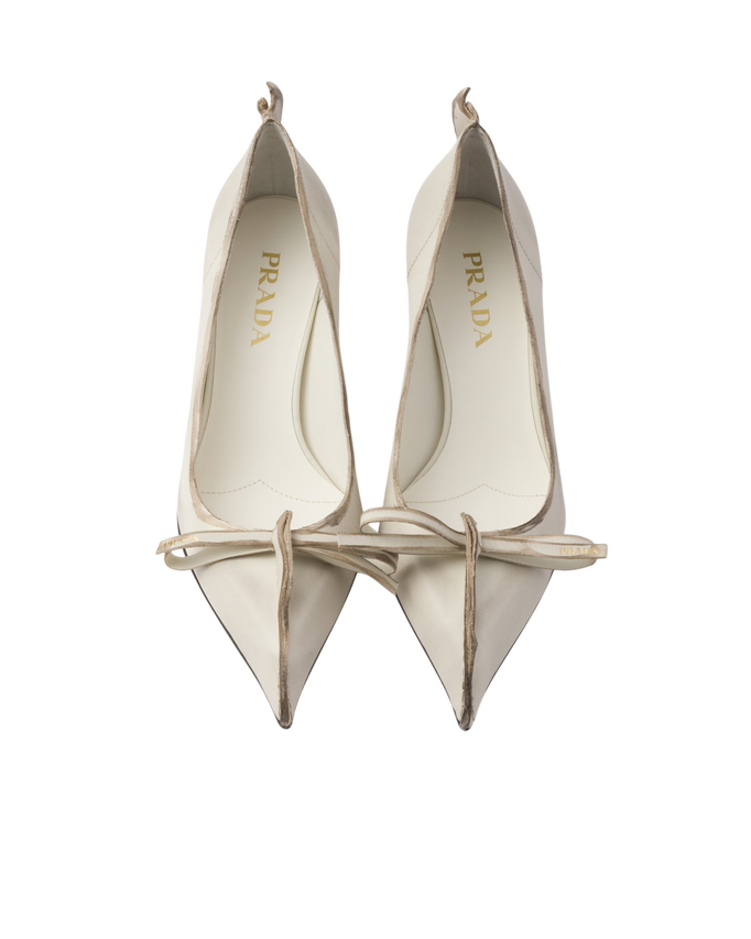 Казалось, после шоу Prada осень-зима 2025/2026 горячее всего обсуждали тренд на растрепанные волосы, как во время депрессии. В итоге с неряшливыми укладками осталась только автор этого материала, а все остальные (так, по крайней мере, ощущается) переобулись: в эти туфли с показа. Со швами наружу, из нарочито состаренной кожи — говорят, они удобные, как тапочки. Возможно, поэтому так прочно обосновались в гардеробах стилиста Кати Табаковой и основательницы КМ 20 Ольги Карпуть.