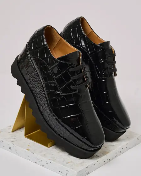 Бренд родом с Урала выпускает обувь уже давно, но только теперь, по словам основательниц Нино Шаматава и Алисы Ушаковой, вышел на серьезный уровень (и в плане качества, и в плане дизайна) и готов конкурировать с мировыми брендами. Впервые эта мысль посетила нас на показе I am that i am в конце 2024 года, когда на цирковой арене (она же подиум) появились сапоги с имитацией ярко-розовых лодочек, а окончательно она осела в 2025-м, когда мы со всех сторон разглядели сапоги-чулки, выпущенные к 10-летию модного дома.
