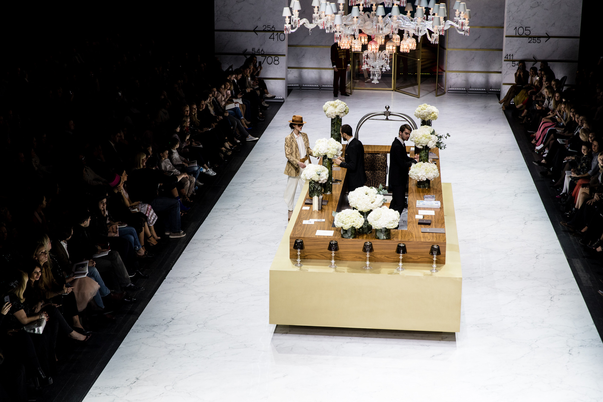Шоу прошло в концертном зале «Барвиха Luxury Village». Для показа построили подиум и стилизовали его под отель 70-80-х годов (с портье в красных форменных пиджаках, стойкой регистрации и так далее). Кроме того, из известного московского ресторана Cristal Room Baccarat по такому поводу привезли хрустальную люстру Baccarat — всего на один вечер.