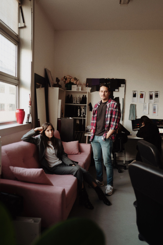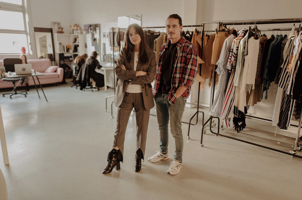 «Мы оба одержимы своей профессией. Мы парень и девушка, и, конечно, у нас разные интересы, но нам удается их очень удачно сочетать в совместном творчестве — и в выборе тканей, и потом в работе над формой. Например, я могу сделать вещь, а она ее наденет и скажет: «Она какая-то пацанская» — и предложит, как ее адаптировать. Результат получается супергармоничным».