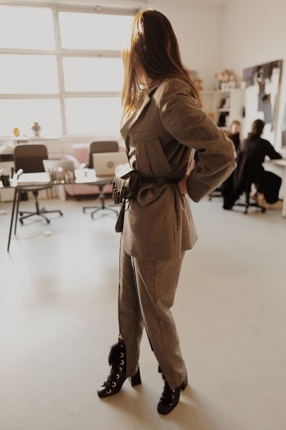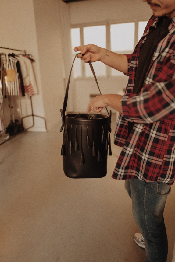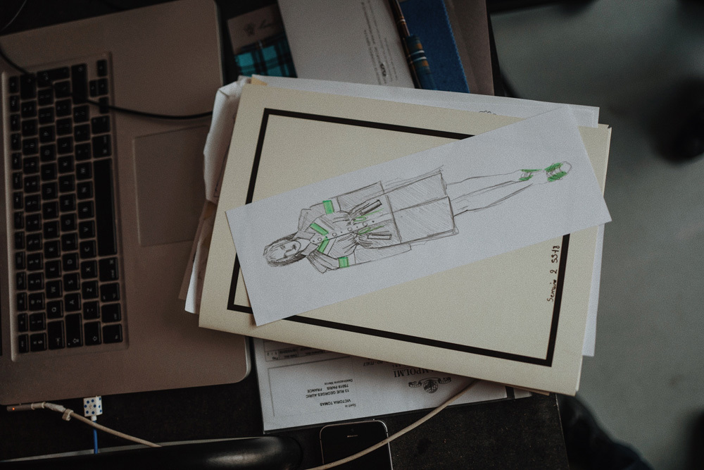 «Вся жизнь марки проходит в этих стенах. В обычное время нас шестеро — мы с Томасом и четыре стажера, а перед дефиле здесь при необходимости может поместиться 20 человек. Именно здесь мы проводим кастинг и все наши встречи с прессой. А на этом розовом диване в самые напряженные моменты перед шоу все спали по очереди, поэтому, чтобы не тревожить сон, мы решили переставить диван к окну».