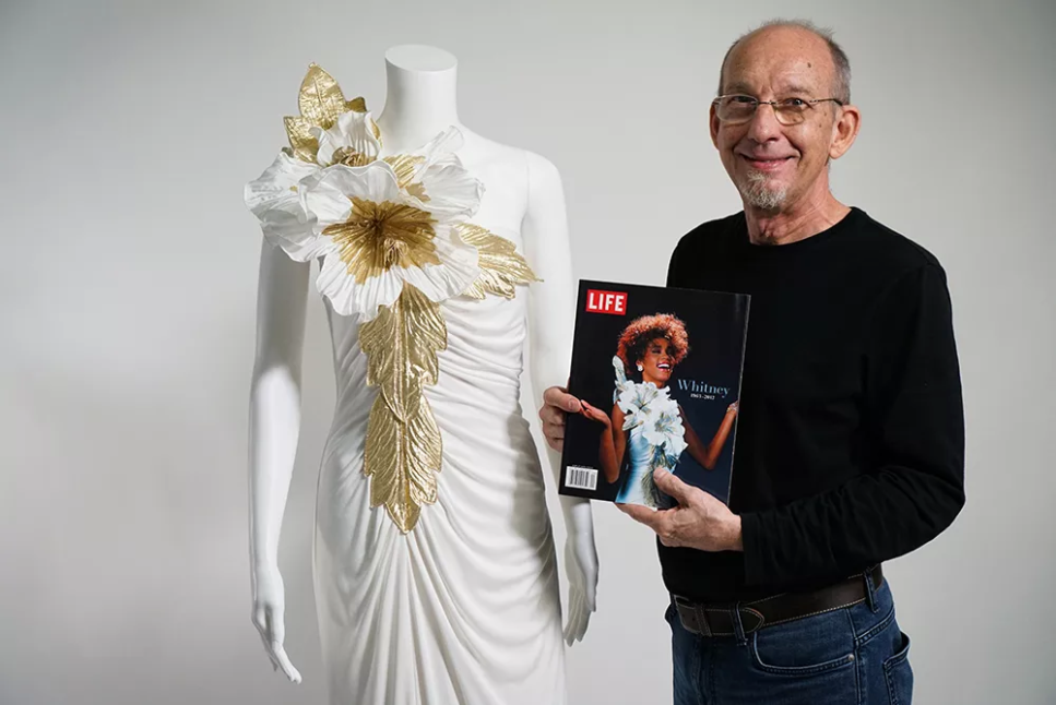 В 1987 году Уитни Хьюстон пригласили на промосъемку — позже кадр из нее станет обложкой журнала Life. Для нее певица выбрала белое платье с крупными золотыми цветками гибискуса на плече — творение бренда Eugene Alexander. Бренд, основанный во Флориде партнерами Юджином Штуцманом и Александром Уолласом (именно с ним Уитни была близко знакома), в конце восьмидесятых и начале девяностых был популярен у знаменитостей — кроме Хьюстон его платья носили, например, Элизабет Тейлор и Джейн Фонда. Дизайнеры создавали кутюрные платья со сложными драпировками, аппликациями и вышивками в духе ар-деко. Но в 1994 году они решили закрыть бренд из-за того, что со своим ручным пошивом и малыми тиражами не могли конкурировать с нарастающими мощностями производства у крупных брендов.