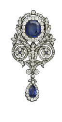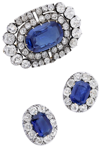 Мария Павловна, супруга великого князя Владимира Александровича Романова, сына императора Александра II и брата императора Александра III, обладала великолепной коллекцией драгоценностей, которую она сумела спасти в вихре революционных лет. Государственный переворот великая княгиня встретила на водах в Кисловодске и забрать украшения из тайника во Владимирском дворце в Санкт-Петербурге поручила в сентябре 1917 года британскому дипломатическому курьеру Альберту Стопфорду и сыну Борису. Был среди них и гарнитур с цейлонскими сапфирами весом 26,80 карата в броши и 6,69 и 9,36 карата в серьгах, созданный в Санкт-Петербурге в 1899–1908 годах в ювелирной мастерской Софьи Шван, вероятнее всего, для фирмы Bolin, поставщика российского императорского двора.