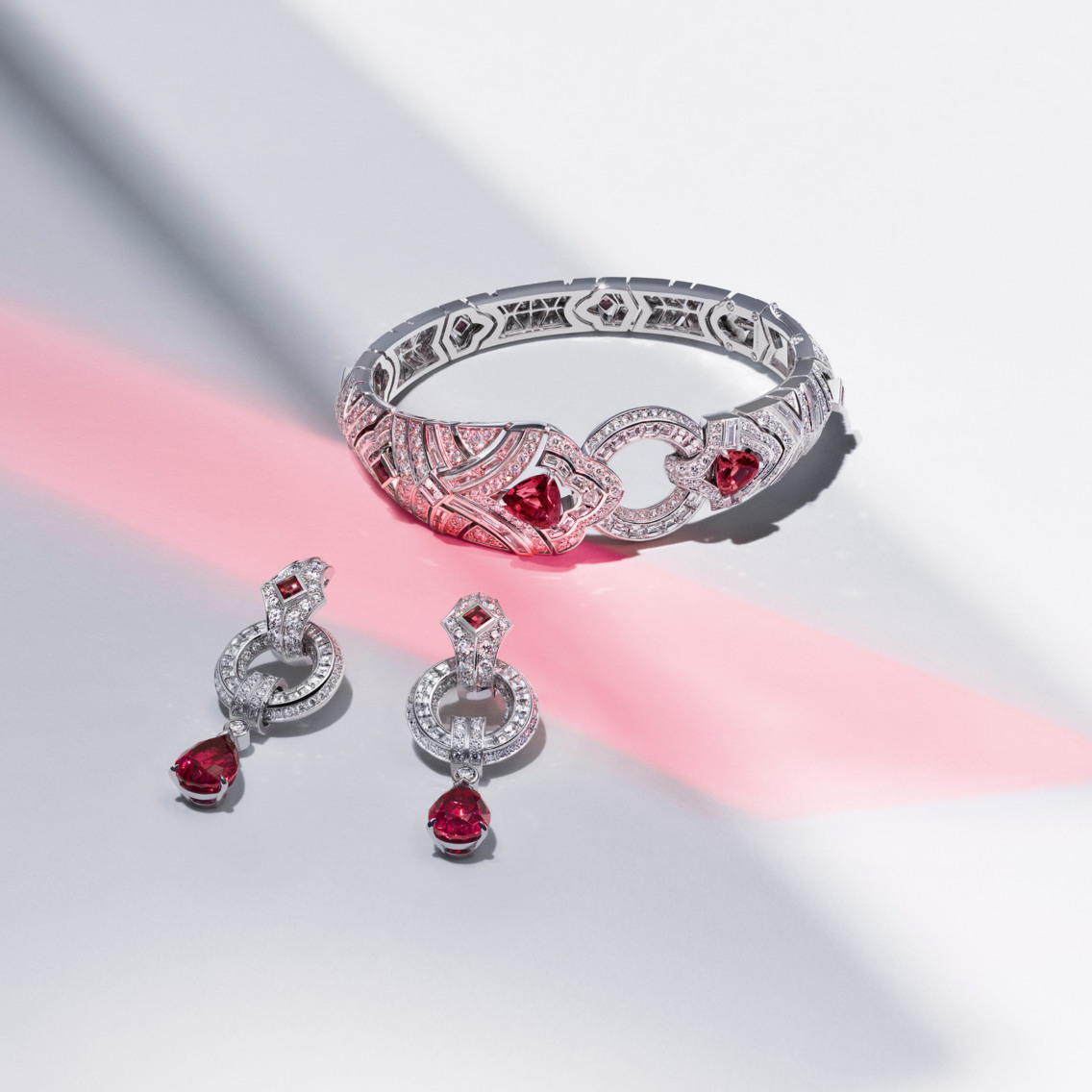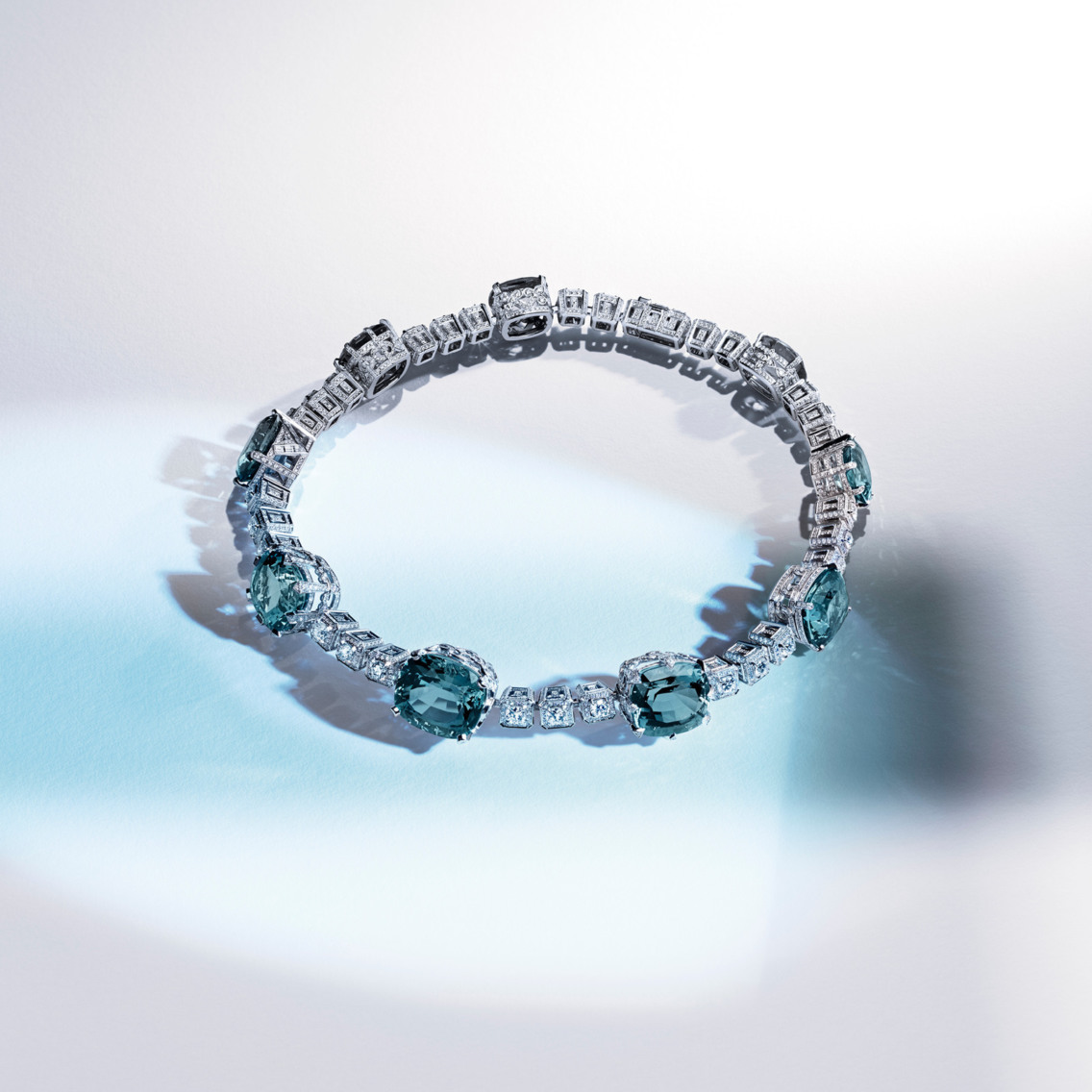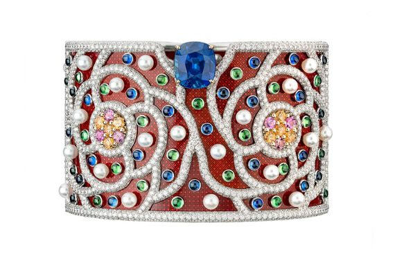Из неожиданного — архитектурные мотивы, которые не так часто встречаются в достаточно плавных украшениях дома. Один из браслетов повторяет по форме зубчатую средневековую стену Вероны, а одноименное колье из бриллиантов и сапфиров (центральный — 23,86 карата) напоминает городскую архитектуру Вероны с петляющими аллеями, мостами над Адидже и фонтанами.