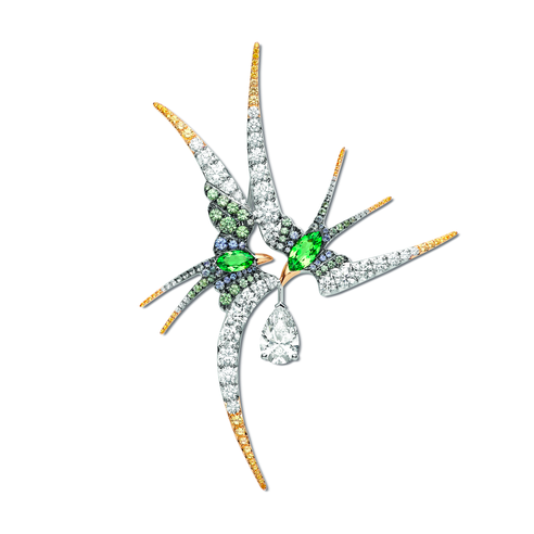 Впрочем, в Chaumet говорят, что ставка новой коллекции не столько на конкретные камни, сколько на цвет и свет, на уникальные ювелирные техники дома, позволяющие раскрыть и подчеркнуть их драгоценное свечение. Одна из главных — fil-couteau, что можно перевести как «тончайший нож». Секрет ее в том, что мастера разбирают украшение на мельчайшие составляющие, досконально прорабатывают его по буквам и слогам так, что в итоге даже самое сложное колье-трансформер выглядит легчайшим облаком из бриллиантов и камней, которое идеально ложится на декольте, а у скульптуры-броши оказываются подвижные элементы. Кажется, что вот-вот эта ласточка взмахнет крылом и улетит в небо Chaumet.