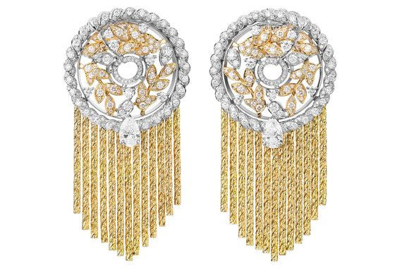 Но центральное место в коллекции у ювелирной классики, фантастического — и по техническим характеристикам, и по исполнению — колье-трансформера Dioscures. В древнегреческой мифологии Диоскуры — братья-близнецы, дети Леды от двух отцов Зевса и Тиндарея. Так же и в колье: два бриллианта — кровные братья-близнецы, происходят из одного алмаза. Имеют огранку «груша», высокие характеристики D IF (бесцветные и абсолютно без включений) и фактически равный вес — 26,35 и 26,37 карата. По желанию могут превращаться в серьги — как кафф, так и классические, или просто отстегиваться, оставляя хозяйке колье из бриллиантов общим весом 93 карата. Дальний родственник «Диоскуров» в семье Cartier — броши 1903 года из платины и бриллиантов, в венке из которых появилась на последней церемонии «Оскар» Рейчел Вайс.