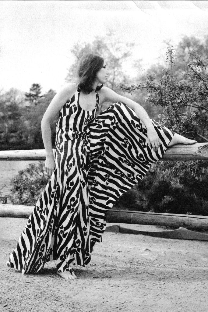 Такой выбор для Донны не был неожиданностью: ее мать была манекенщицей, а отец портным, так что она рано начала интересоваться модой. Причем чтением журналов все не ограничилось: еще будучи подростком, мисс Фласке (девичья фамилия Донны) начала самостоятельно шить одежду по своим эскизам. Собственно, платье, в котором она позирует перед камерой, она сшила себе сама на выпускной. Так что официально оно считается вообще первым в истории платьем от Донны Каран (забудем ненадолго о том, что тогда она носила другую фамилию). Если рассмотреть платье внимательнее, можно угадать приметы стиля будущего большого бренда: Каран-дизайнер и дальше будет любить длину макси, облегающий, но не сковывающий движения силуэт и выразительные принты.