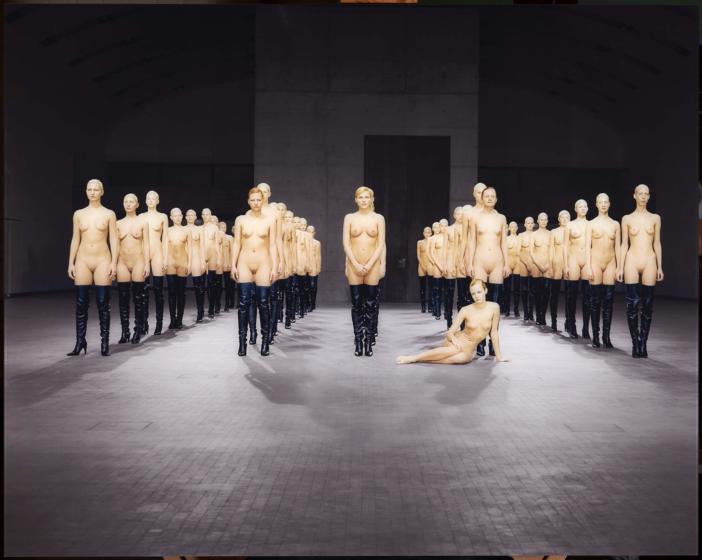 Перформанс Ванессы Бикфорт VB45, 2001. Это ее первая коллаборация с модным брендом. Девушки в высоких ботфортах Helmut Lang стояли до тех пор, пока каждая из них не устала и не села