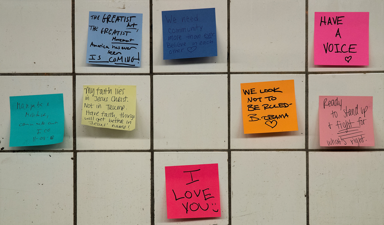 Стикеры в нью-йоркском метро в знак протеста против победы Трампа на выборах, 2016