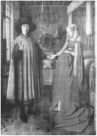 Инфракрасные рефлектограммы портрета семьи Арнольфини работы Яна ван Эйка (с) National Gallery