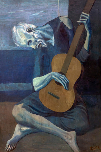 как выяснилось благодаря инфракрасному и рентгеновскому анализам, скрываются как минимум два ранних полотна художника на совершенно иной сюжет: мать кормит грудью ребенка, стоящего перед ней на коленях. Фигурирует и корова — примерно там, где позже появится гриф гитары.