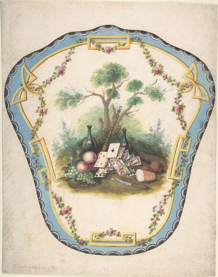Каминный экран с нарисованной на нем сценой пикника и игры в карты, Эжен Шарпантье, Франция, вторая половина XVIII века