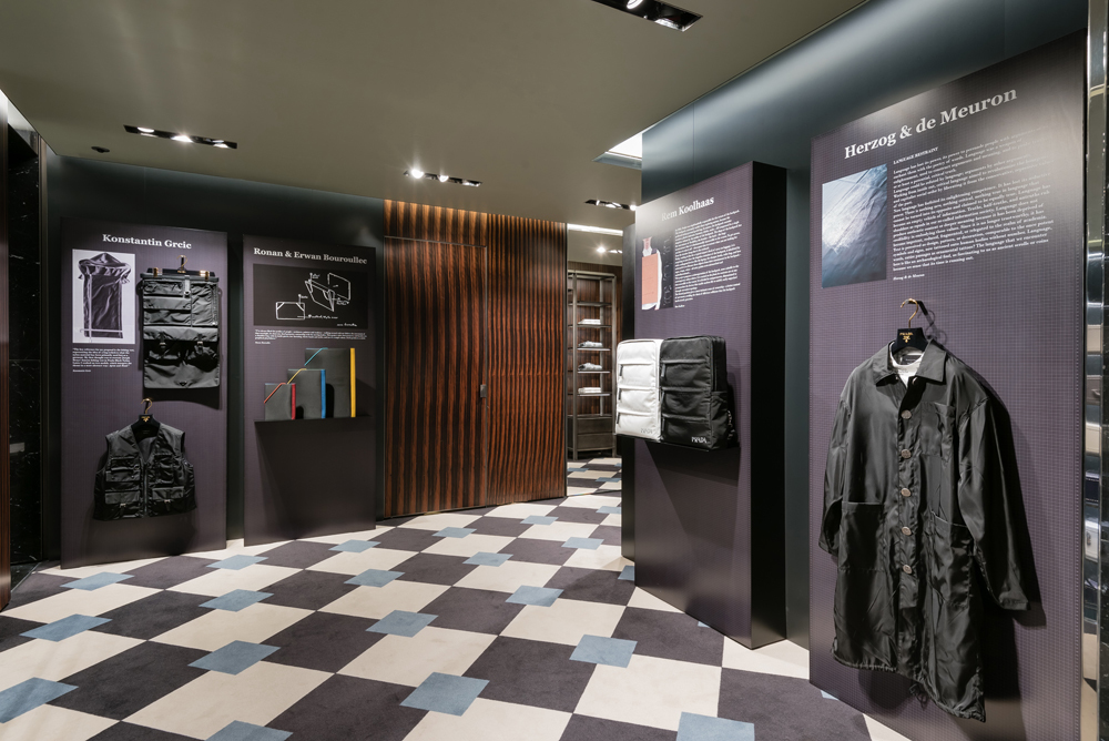 Когда Миучча Прада показала свою первую коллекцию в 1988 году, на счету у маленькой модной империи были магазины разве что в Милане и Нью-Йорке. В 2000-х дружба с Ремом Колхасом привела к постепенному захвату брендом всего мира: это были и магазины (в 2000 году компания выполнила для Prada первое исследование, которое воплотилось в строительство крупного магазина «Эпицентр Prada» в Нью-Йорке — одновременно бутика, общественного пространства, галереи и творческой лаборатории, — напоминающего волну, с одной стороны которой — выдвижная сцена, с другой — лестница-амфитеатр), и открытие арт-центром Фонда Prada в Милане на месте бывшего винокуренного завода, и модные показы для Prada and Miu Miu, лукбуки SS 2009, FW 2010, и музейные пространства.