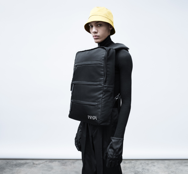 Рем Колхас решил сделать для проекта рюкзак, похожий на парашютный ранец и располагающийся на груди. Свой выбор он объясняет тем фактом, что именно Прада в 1984 году помогла рюкзаку снова вернуться в моду — и стать любимым предметом обихода новой городской жизни. Рем всячески хвалит этот аксессуар за удобство, но отмечает, что один его большой недостаток — то, что он располагается сзади и владельцу не слишком удобно им пользоваться, да и с большим рюкзаком трудно маневрировать, когда он находится сзади.