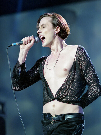Бисексуальность и гендерную неопределенность солист Suede Бретт Андерсон нес не только в тексты, но и в свой имидж. Обтягивающие джинсы и женственные шелковые блузки, которые он нередко (и очень театрально) рвал на выступлениях, выстраивали Андерсону андрогинный образ, а стирание гендерных границ усиливала тяга певца ко всему черному: в худой, скрытой полумраком сцены и собственной одежды фигуре было трудно различить половые признаки. Андерсон вдохновлялся скорее Дэвидом Боуи и солистом The Smiths Моррисси (с ним сравнивали и музыку Suede), чем своими «пацанистыми» коллегами вроде Галлахеров. И, пожалуй, единственный из всех брит-поперов, плохо вписывался в Cool Britannia — декадентам там места не было.