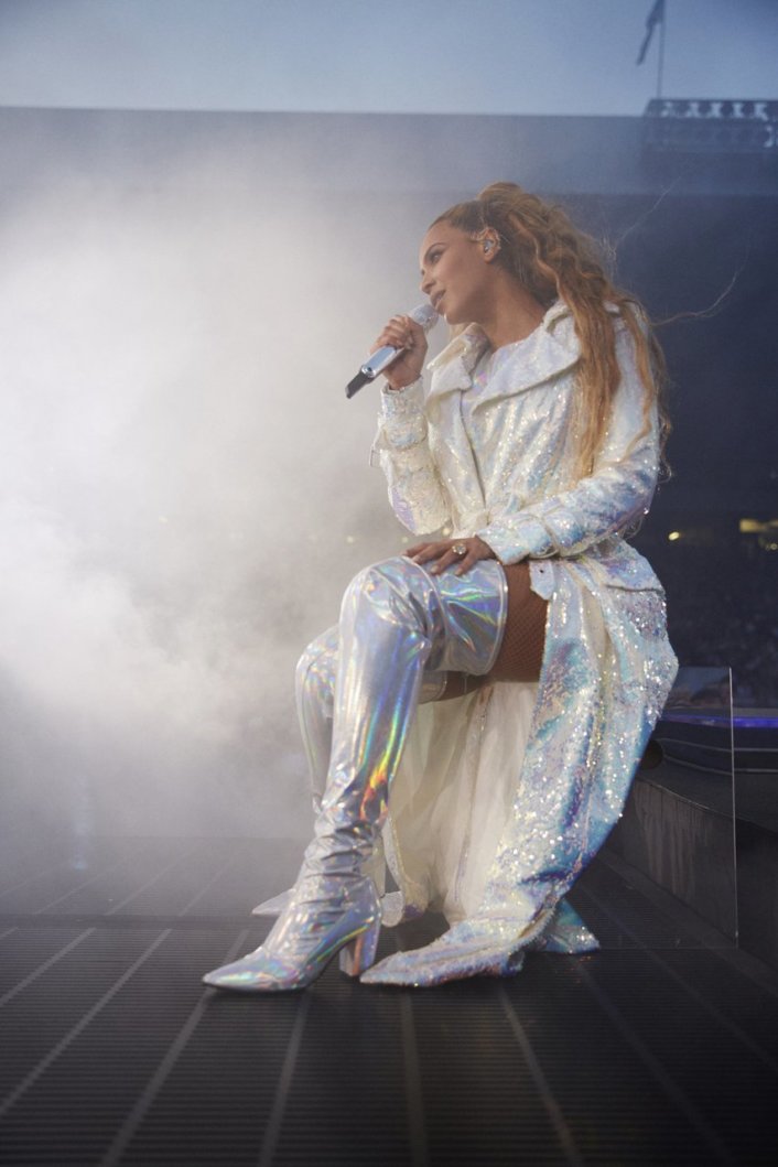 И все-таки главное открытие этого тура — принарядившийся Джей-Зи. Его костюмы — своего рода визуальная репрезентация строчки partner let me upgrade u из совместной песни Upgrade U. Ведь к удивительным костюмам Би мы привыкли, а к тому, что и Джей так часто меняет аутфиты — в какой-то момент он даже выступает в бронежилете, — нет. Тут и белоснежный костюм Givenchy, и, кажется, рубашка в стиле Dries Van Noten. Список в титрах после окончания концерта — это где-то тридцать-сорок брендов, среди которых есть и Dapper Dan, и Loewe, и Maison Margiela, и Valentino. Вот такое оно — завершение трехлетней эры. И мы с нетерпением ждем следующую.