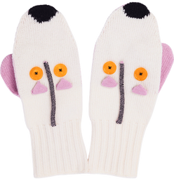 Кожаные полуперчатки Ushatava, варежки Sela, украшенные вязаной голубикой, или перчатки в рубчик Daisyknit — все они, впрочем, проигрывают шерстяным варежкам Marni, напоминающим мордочки щенков. Для лепки снежков самое то — да и для того, чтобы разбавить ими монохромный образ.