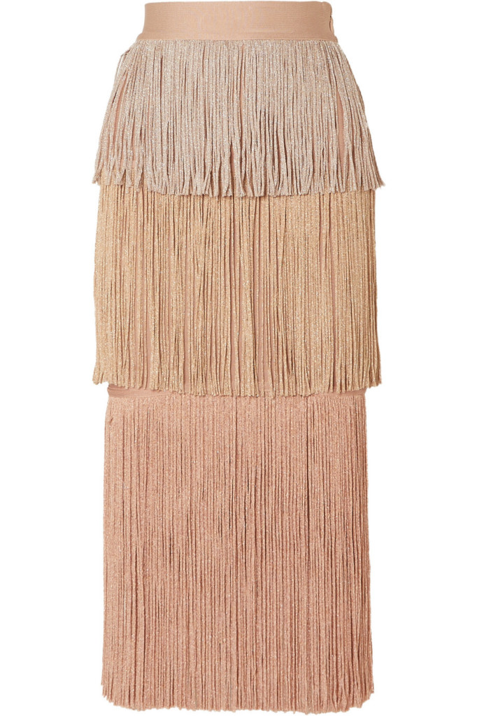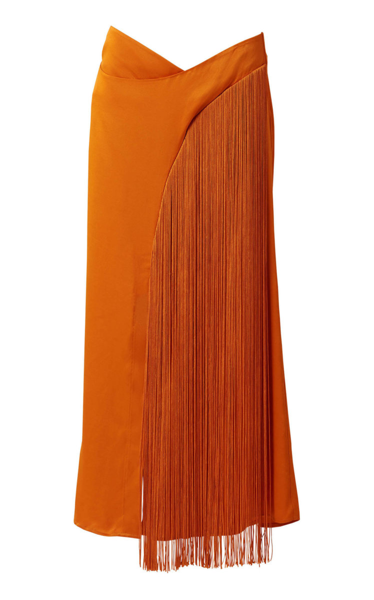 Дикий Запад или диско — нельзя точно сказать, откуда пошел тренд на бахрому в этом сезоне. По фактуре бахрома бывает разной, но это всегда очень эффектная деталь. Если вас привлекает стиль вестерн (замшевые жакеты или рубашки с бахромой на рукавах), то главное — не переборщить и не превратиться в ковбоя, так что казаки в этом случае лучше отложить. А если вам по душе бахрома как в 70-е, для вечеринок и танцев (ведь она так классно развевается!), то ее много не бывает. Можно сразу взять комплект из топа и юбки и даже добавить к нему сумку с длинными подвесками из стразов.