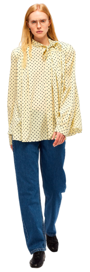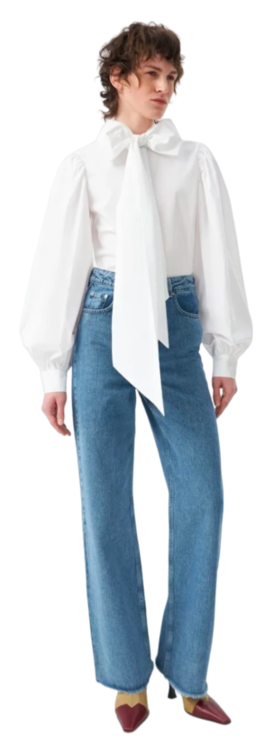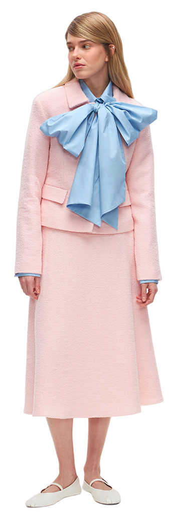 До сих пор блуза с лентами, завязанными в бант на шее, казалась чем-то старомодным или вызывала ассоциации с политическим дресс-кодом. В 1980-е такие носила Маргарет Тэтчер, в 2010-е любила Мелания Трамп, а сейчас застолбила за собой герцогиня Кембриджская Кейт Миддлтон. Впрочем, современные модные «коры» заставляют нас взглянуть на блузу с бантом иначе. Виновниками всеобщего помешательства на бантах признаны balletcore, coquettecore и regencycore. А еще на нем не мог не сказаться тот факт, что на подиумах стали часто мелькать кошки, а ведь именно на них мы обычно видим пышные банты. Не зря второе название блузы, о которой идет речь, — pussycat bow.