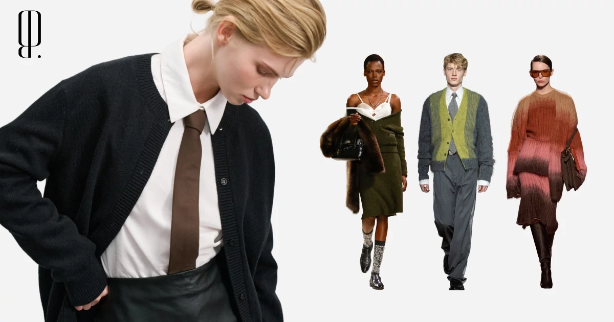 То, что еще пару лет назад самый обычный серый кардиган стал самым модным, — заслуга опять-таки Миуччи Прады. Ажиотаж вокруг него уже стих, но зато он закрепил за собой статус самой универсальной модели.