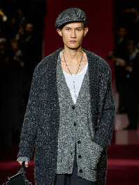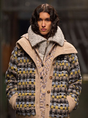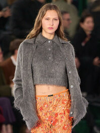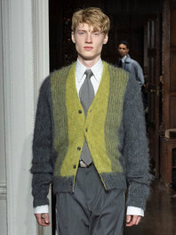 Благодаря Miu Miu последние несколько сезонов на подиумах сплошь приталенные и короткие кардиганы — какие женщинам удобно надевать под жакеты, а мужчинам под пиджаки. В сезоне осень—зима 2025/2026 подобных меньше не стало: силуэт подхватили и Coach (сочетали «кропнутый» кардиган с футболкой, из-под которой выглядывал торс), и Auralee (стилизовал такой с рубашкой).